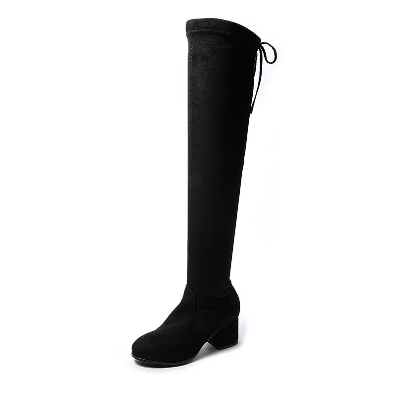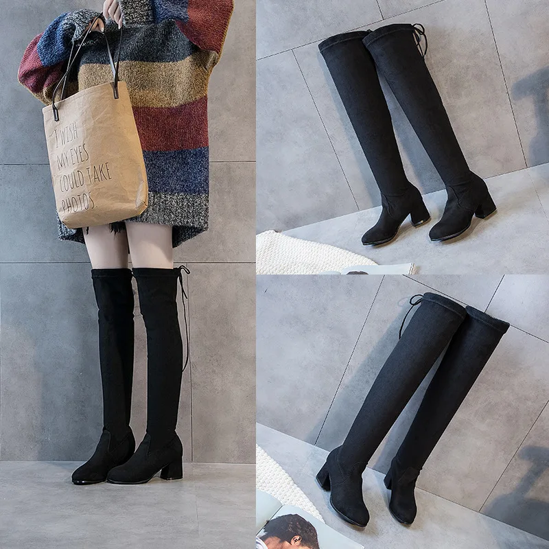 Купить Autumn and Winter New Style Non-dropping Boots Stretch Knee Boots Children's High-heeled Round Head Suede Plus Size Knight Boots за 1650рублей