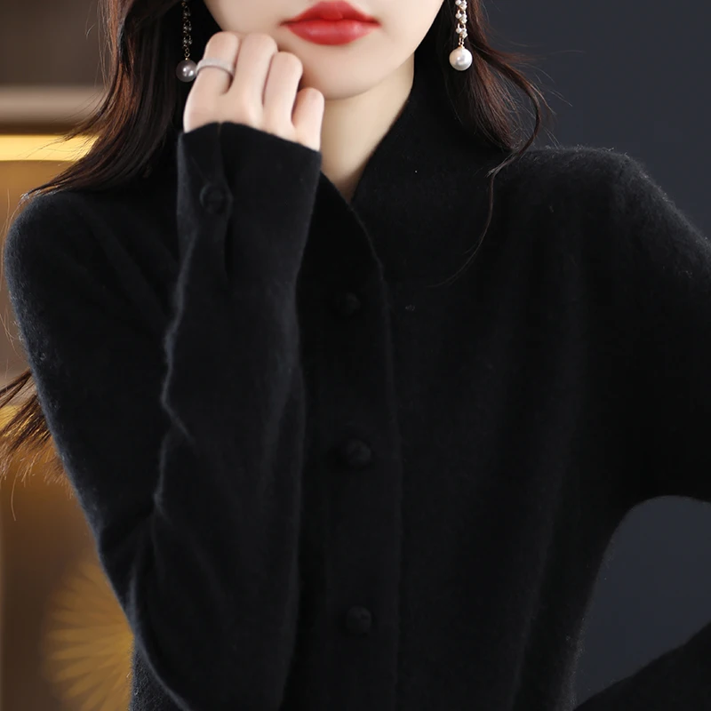 Купить Autumn and Winter New Style Women's Wool Cardigan Solid Color Half High Neck Sweater Loose Casual Versatile Wool Knitting Coat за 2500рублей