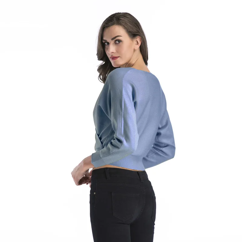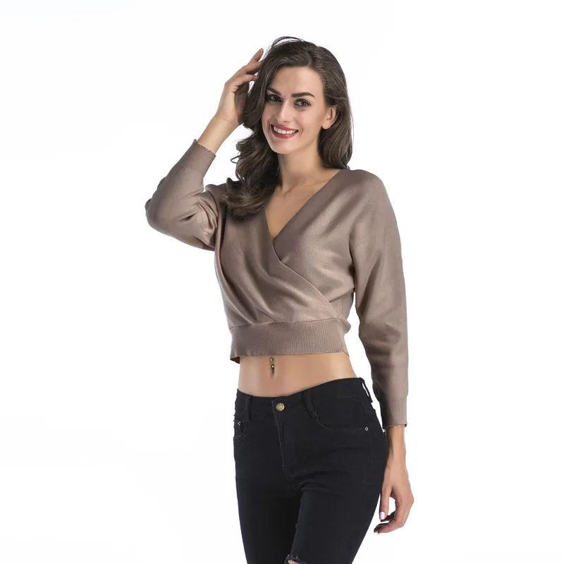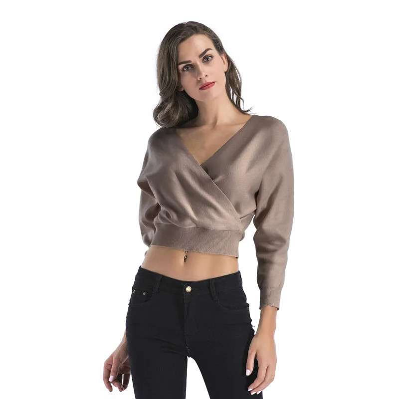 Купить Autumn and Winter Solid Color Short Long-Sleeved Deep V-Neck Tight-Fitting Ladies Sweater Knit Sweater Women за 1250рублей