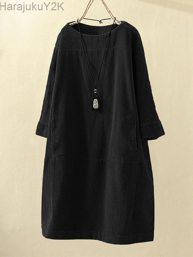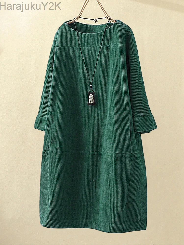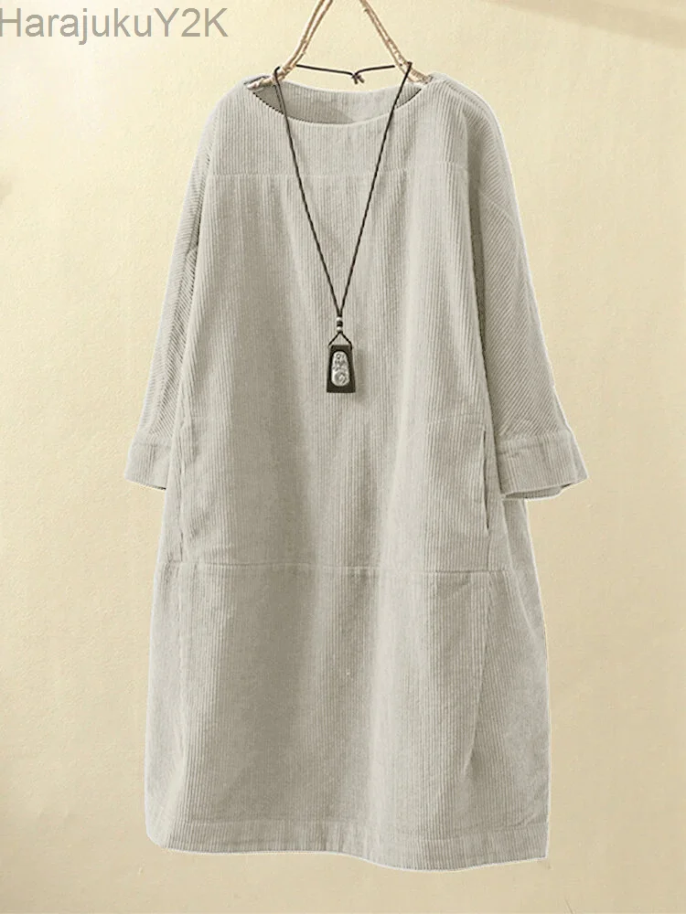 Купить Autumn winter corduroy retro solid dress plus size 5x loose dress women thick dresses good quality lady winter dress comfortable за 500рублей