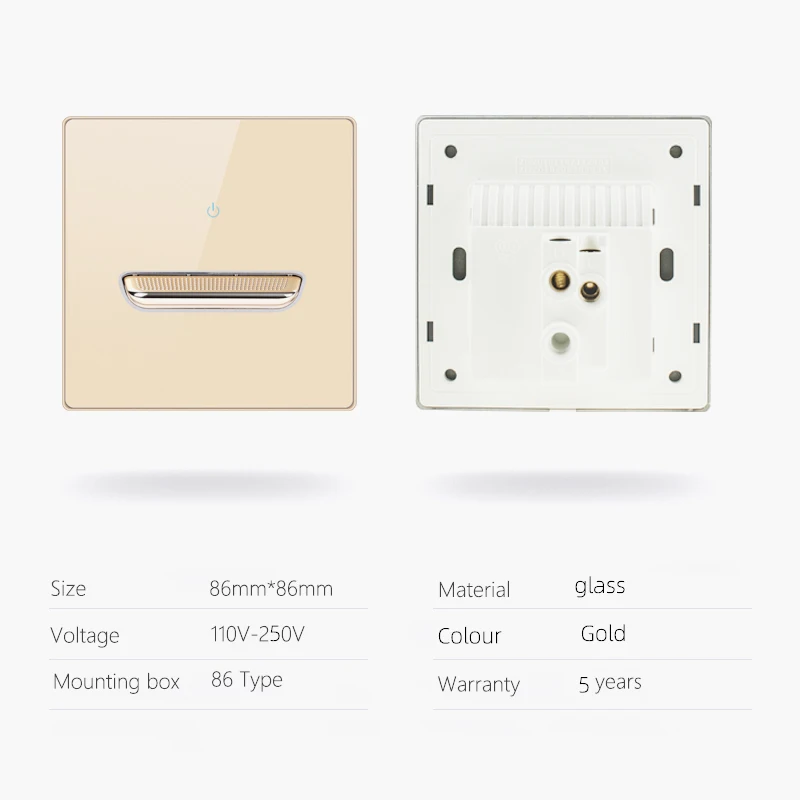 Купить Avoir Gold Glass Wall Light Switch Push Button LED Indicator Switch 220v EU FR Electrical Sockets And Switches Dimmer Fan за 500рублей