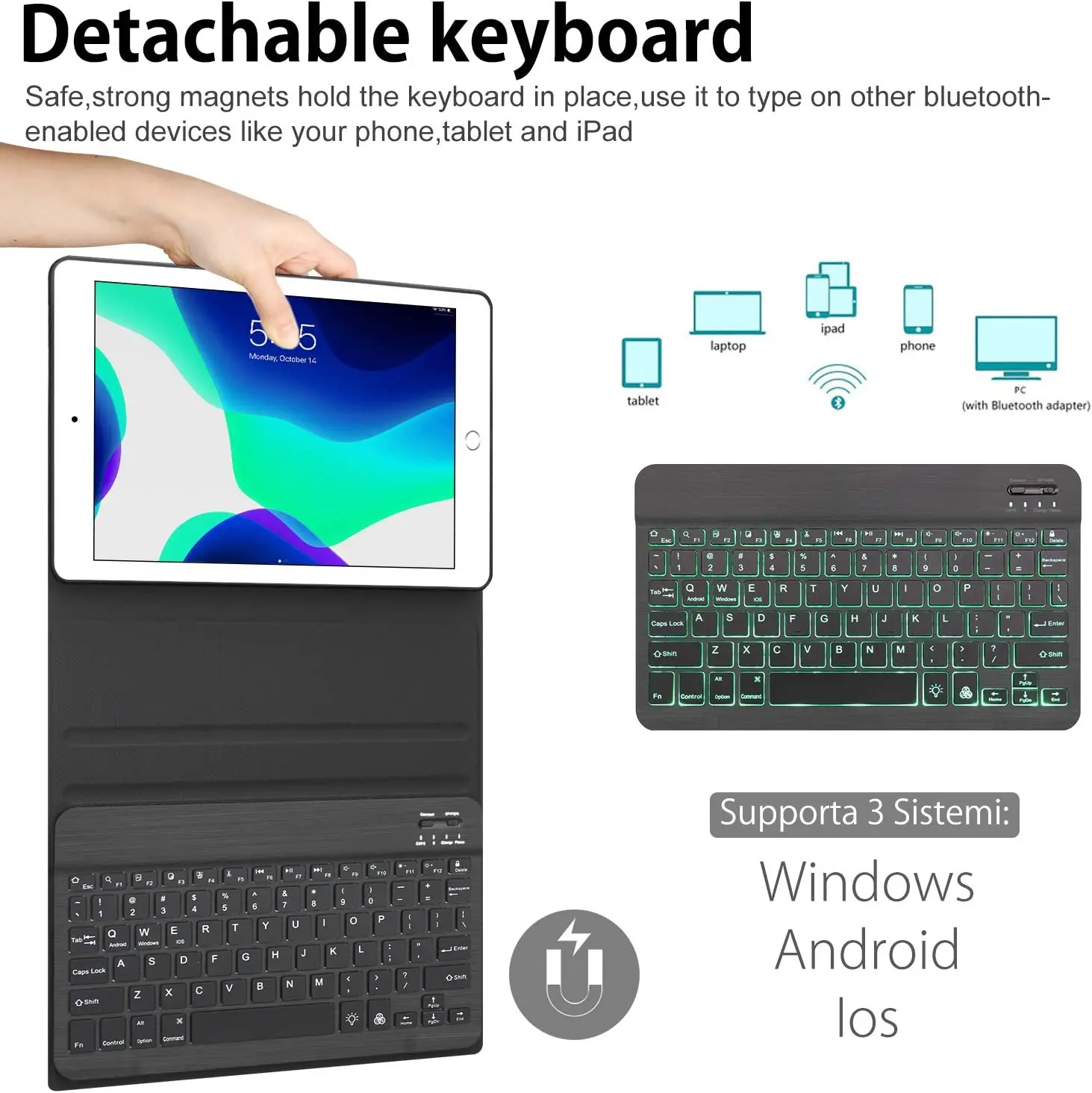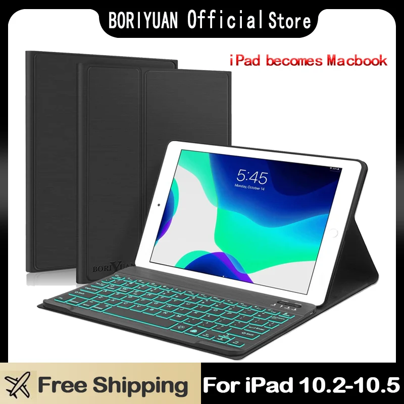 Купить BORIYUAN Keyboard 7 Colors Backlit Detachable Slim Leather Folio Smart Cover for iPad 10.2 8th 7th Pro 10.5 iPad Air 3 2019 за 1900рублей