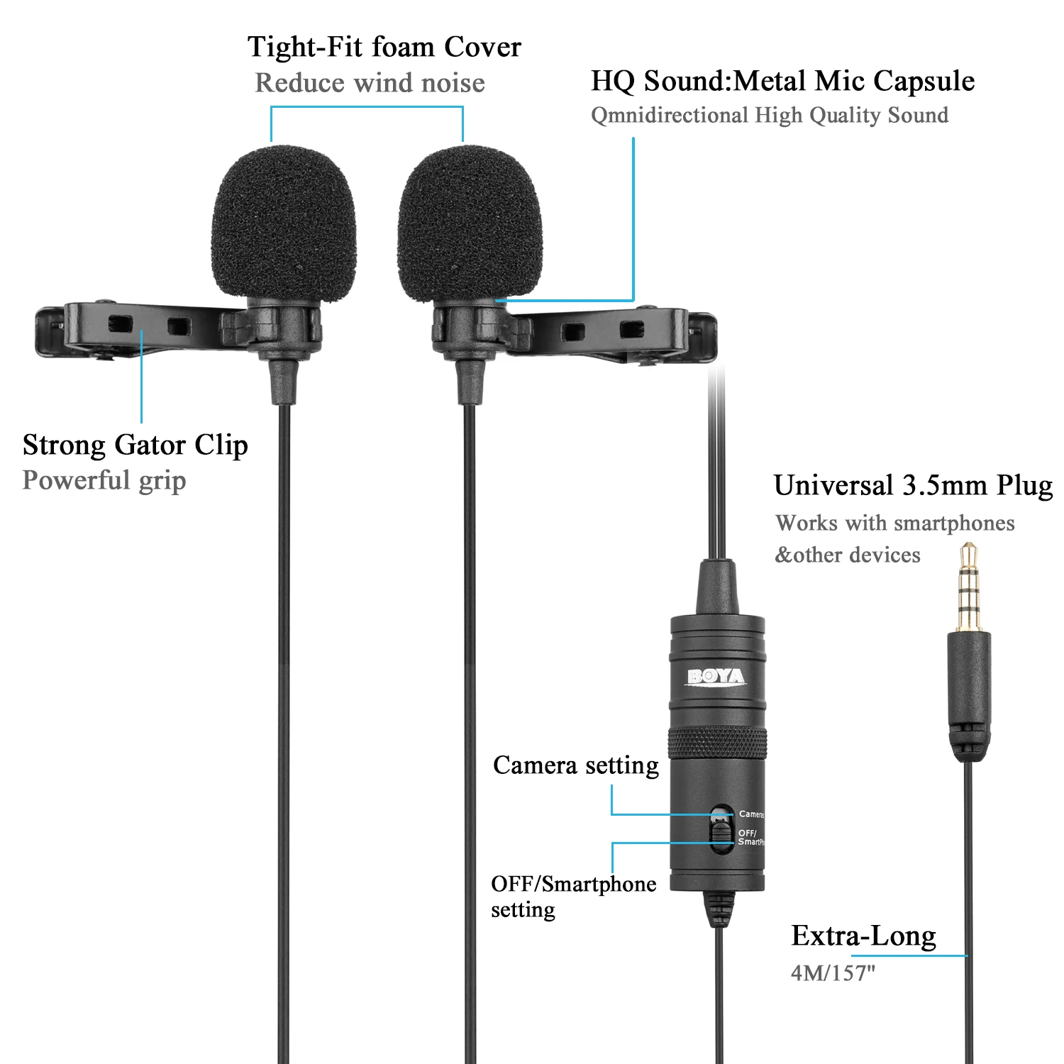 Купить BOYA BY-M1DM 3.5mm Dual Lavalier Microphones Condenser Clip-on Lapel Mic for Smartphone Camera Laptop DSLR Live Streaming Vlog за 1000рублей