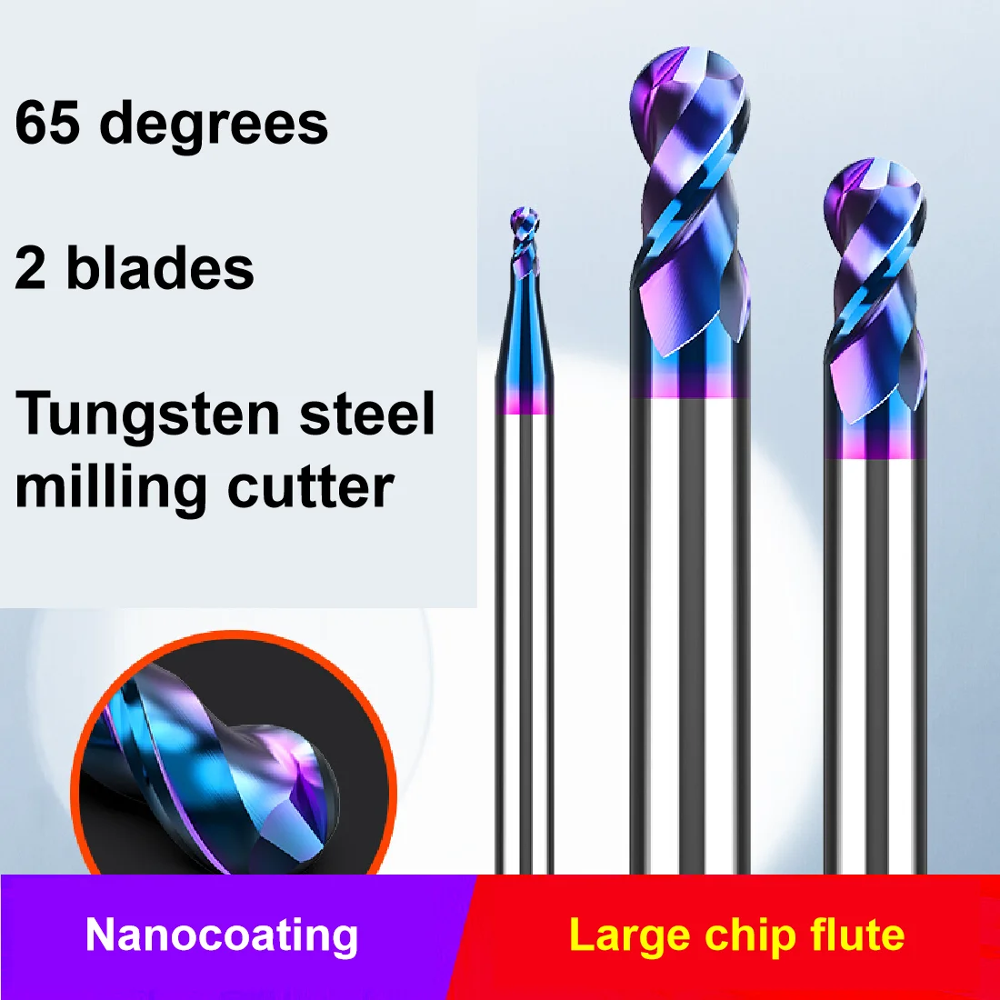 Купить Ball Nose End Mill Tungsten Carbide Cutter CNC Router Bit Milling Tool R0.5 6mm 8mm 10mm 2 Flutes HRC65 EndMillS Cutting tools за 300рублей