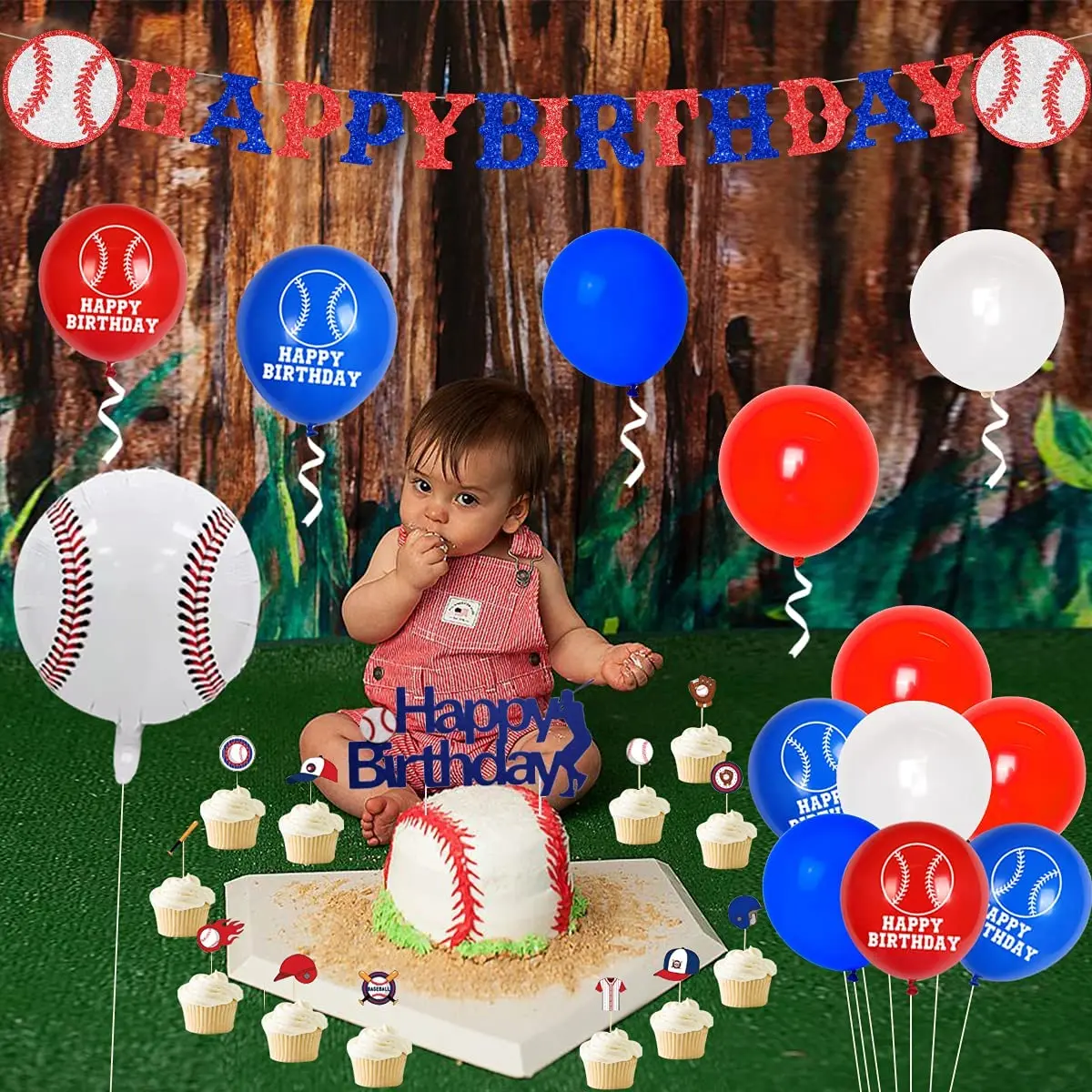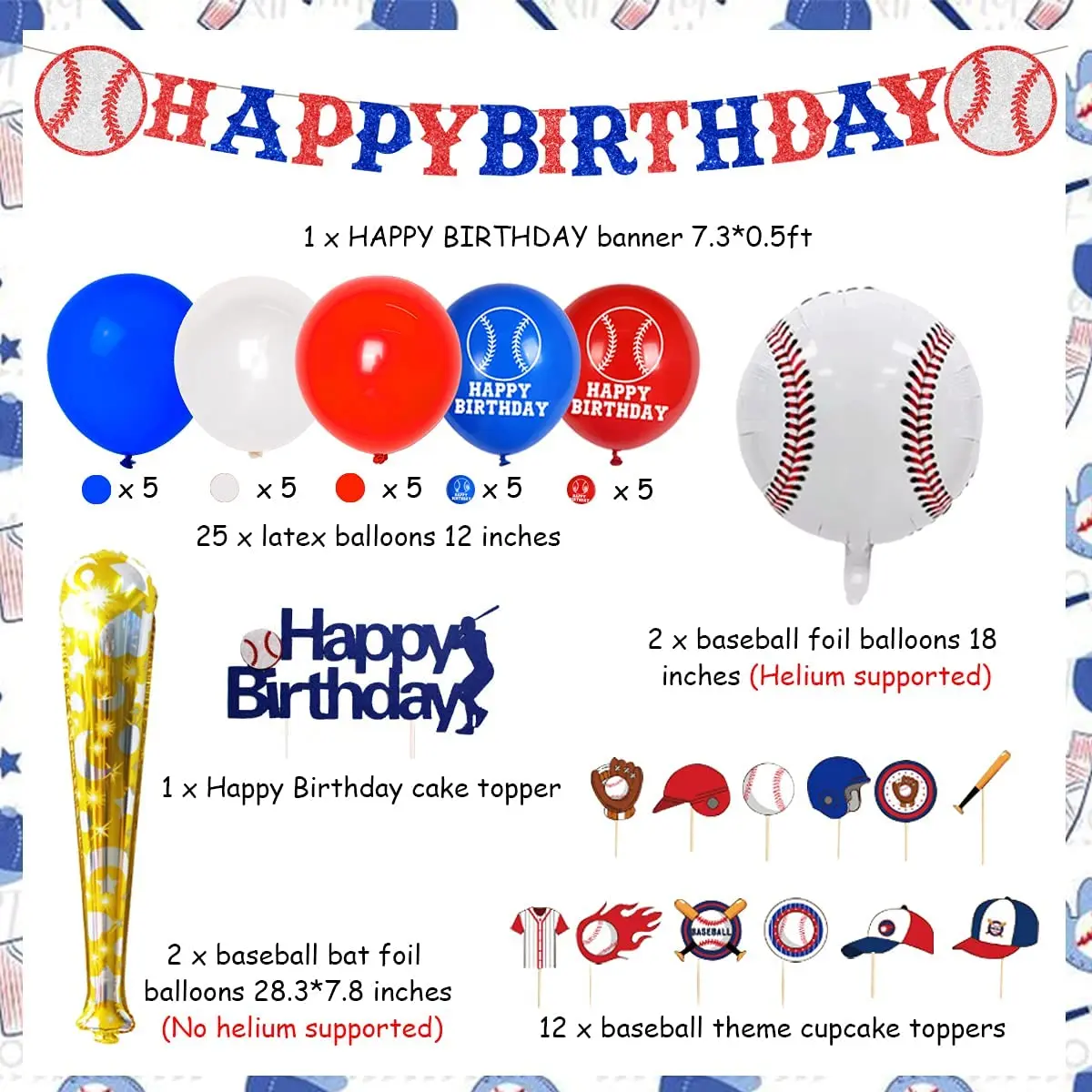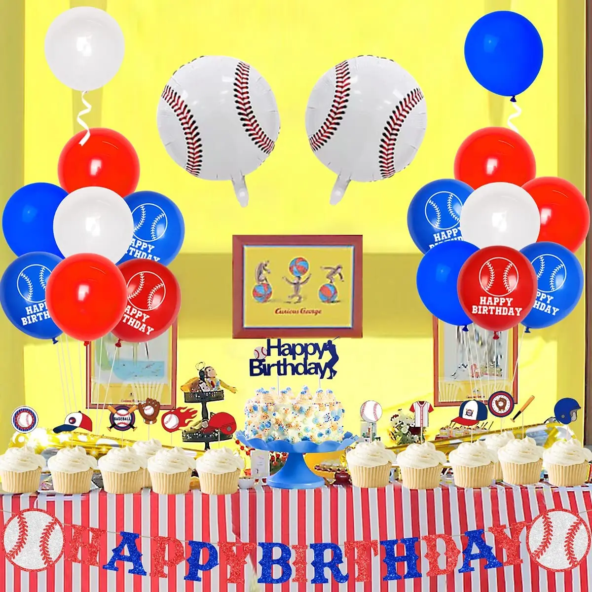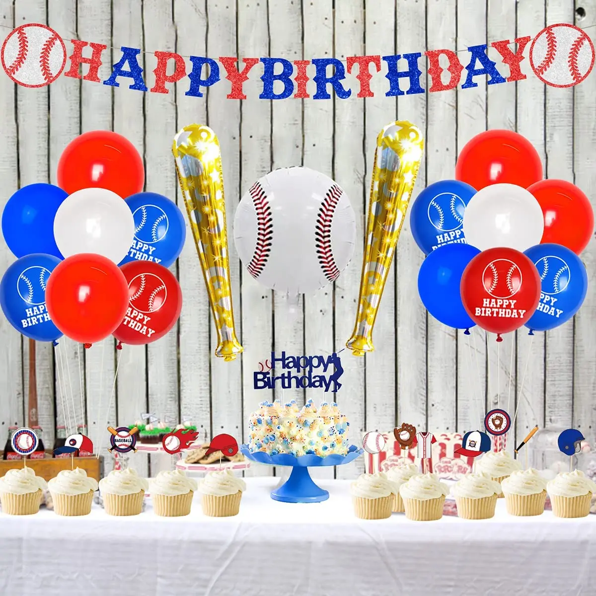 Купить Baseball Birthday Party Decorations Balloon Set Cupcake Toppers Baseball Balloons for Kids 1st 2nd 3rd Birthday Party Supplies за 700рублей