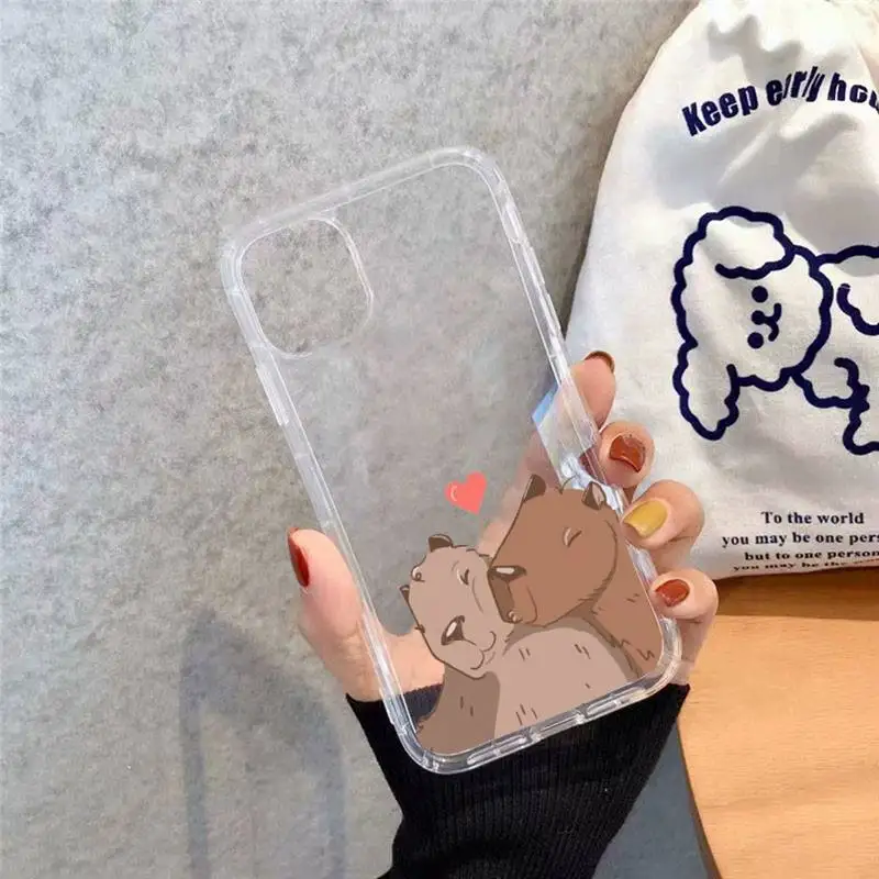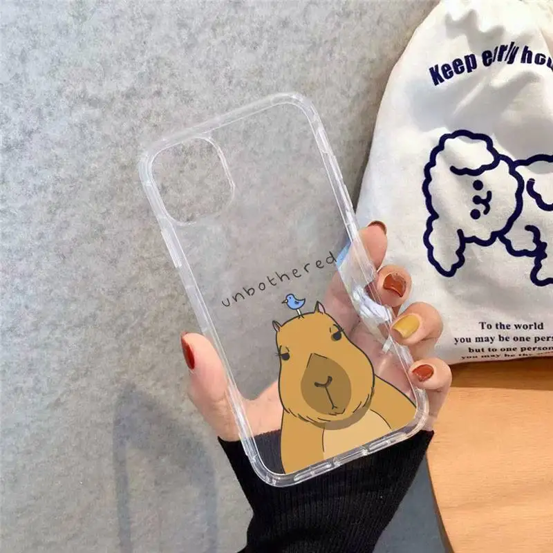 Купить Be happy Capybara cute cartoon Phone Case Transparent soft For iphone 11 13 12 14 x xs xr pro max mini plus за 200рублей