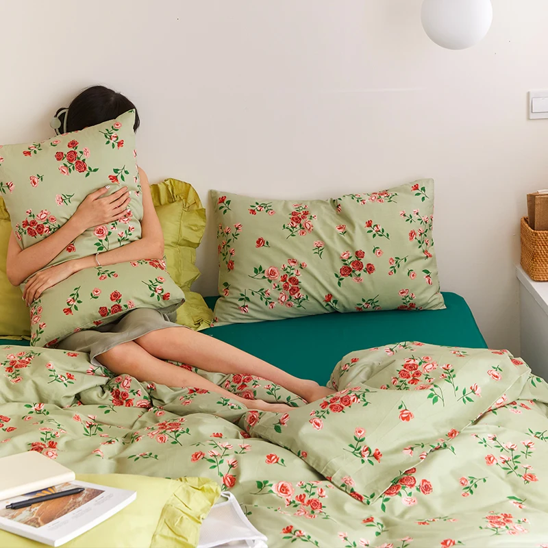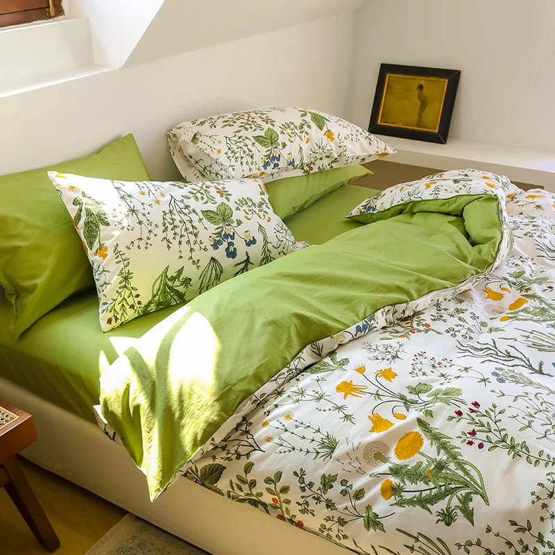 Купить Bed Sheet Four-Piece Set Pure Cotton All Cotton Simple Flower Quilt Cover Student Dormitory Bed Three-Piece Set за 5650рублей