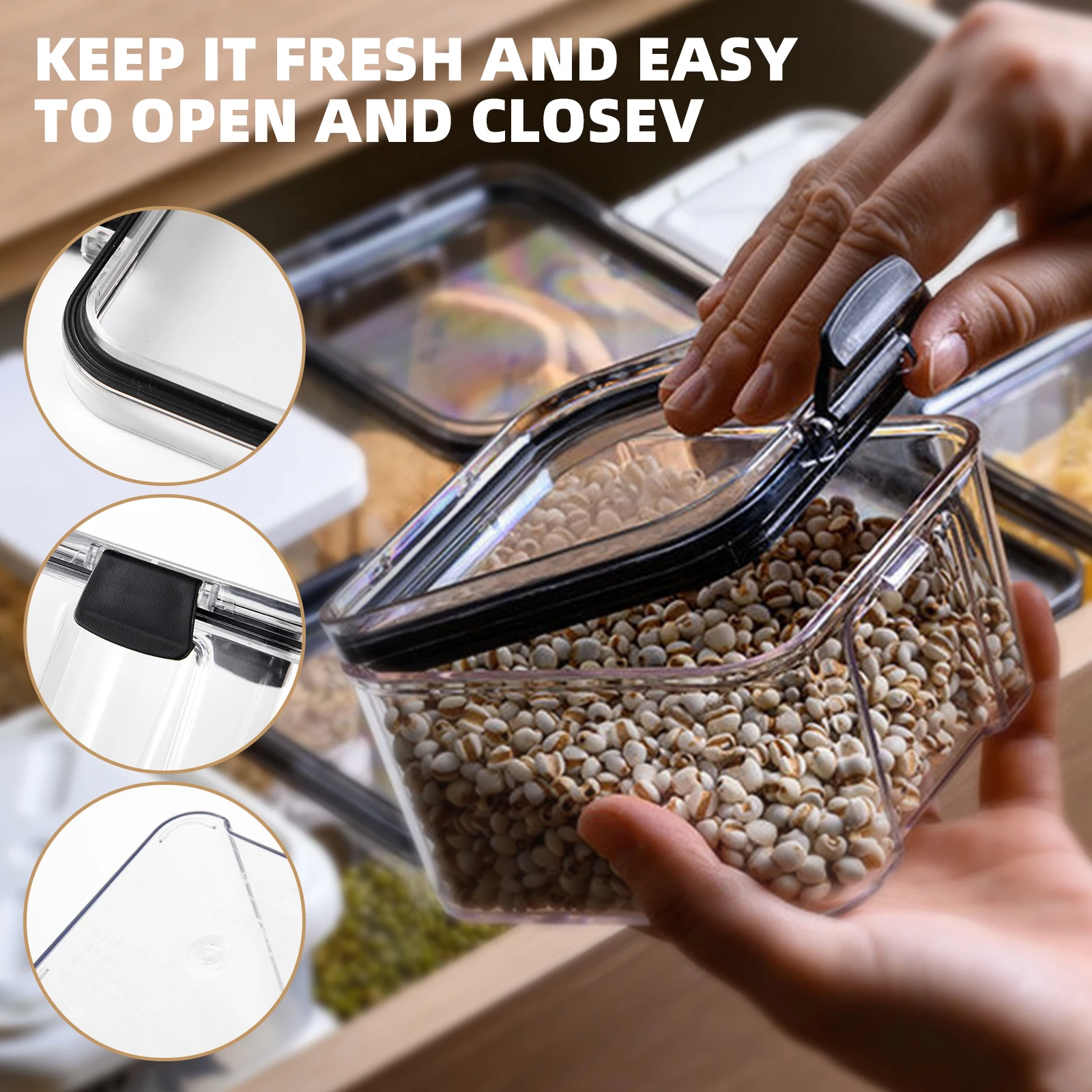 Купить Behogar 4 Pieces Moisture-Proof Stackable Airtight Food Storage Box Container Set Kitchen Pantry Organization Canisters with Lid за 750рублей