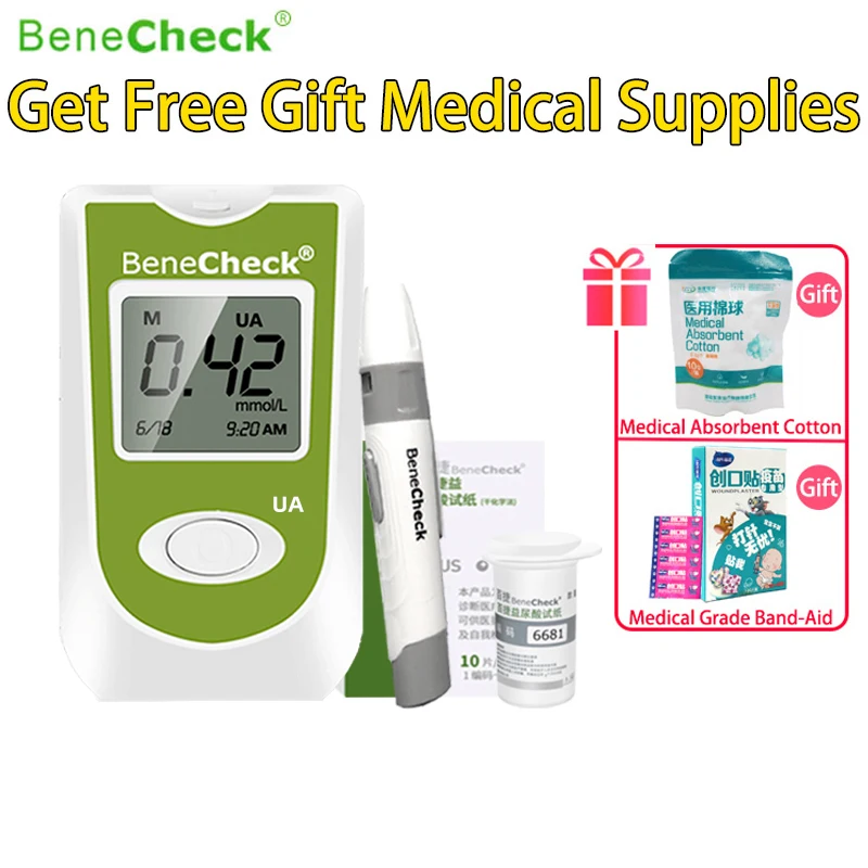Купить BeneCheck Uric Acid Automatic Meter 10/25Pcs Test Strips and Lancets Needles for Uric Acid Measurement of Gout Monitor Included! за 750рублей