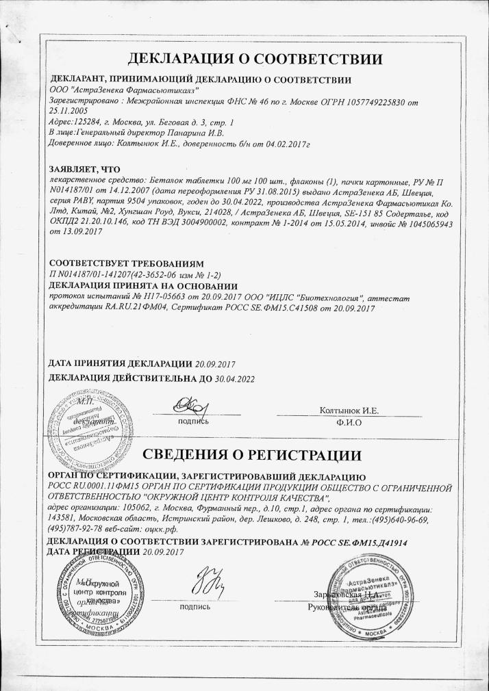 БЕТАЛОК таблетки - инструкция по применению, …