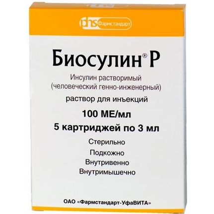 Биосулин Р р-р д/и 100МЕ/мл 3мл N5 . Для покупки этого товара вам потребуется рецепт . Биосулин Р р-р д/и 100 ЕД/мл картр 3 мл N5 представляет собой инсулин человека короткого воздействия .