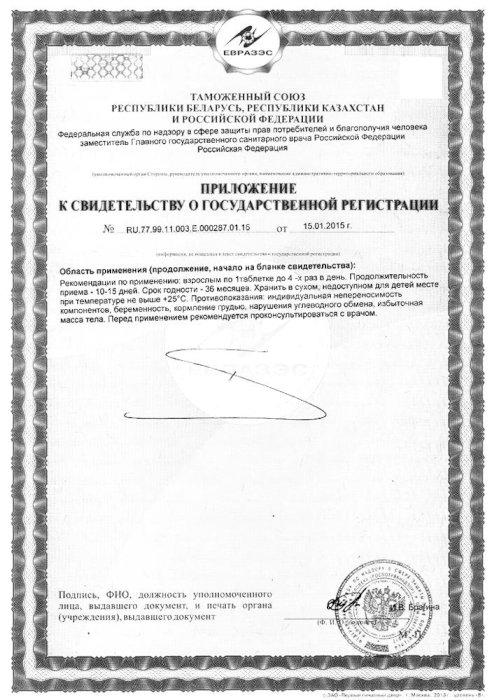 Внутрь взрослым - по 5-15 мг, детям в возрасте 8-14 лет - по 10 мг, 2-8 лет - по 5 мг . Частота приема 1 раз на ночь или утром за 30 мин до еды .