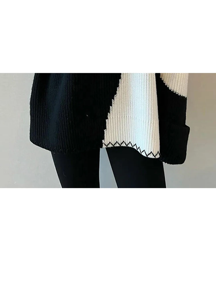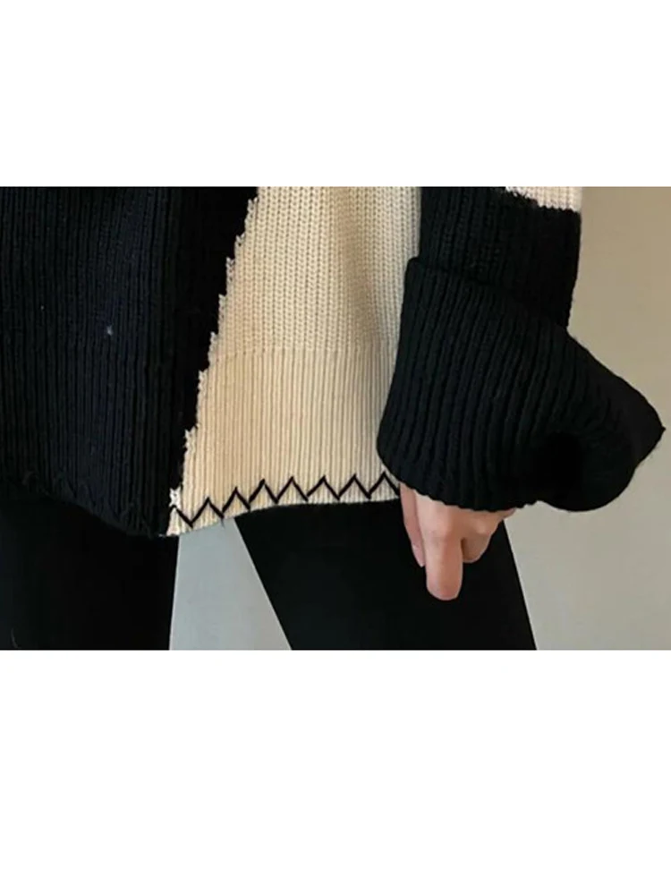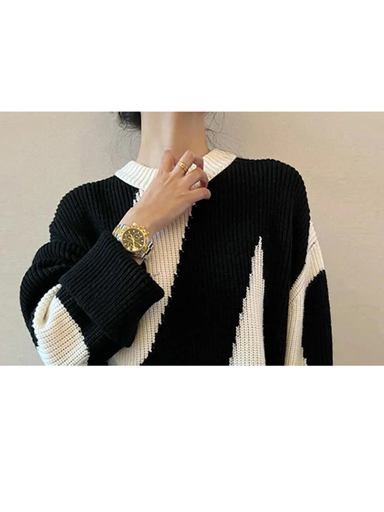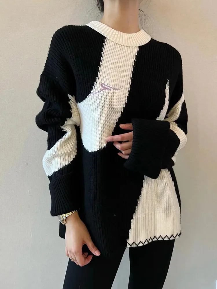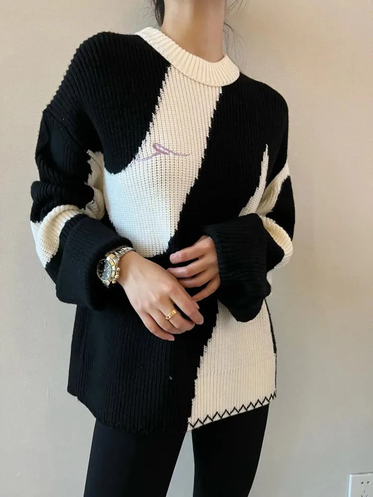 Купить Black And White Thick Sweaters New Autumn And Winter Western-Style Contrasting Color High-End Design Niche Knitted Pullover за 1150рублей