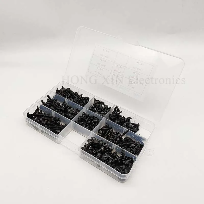 Купить Black Self-tapping Screws Cross Head with Screw Washer M3M3.5M4M4.8 Carbon Steel Pan Head Set Assortment Kit за 850рублей
