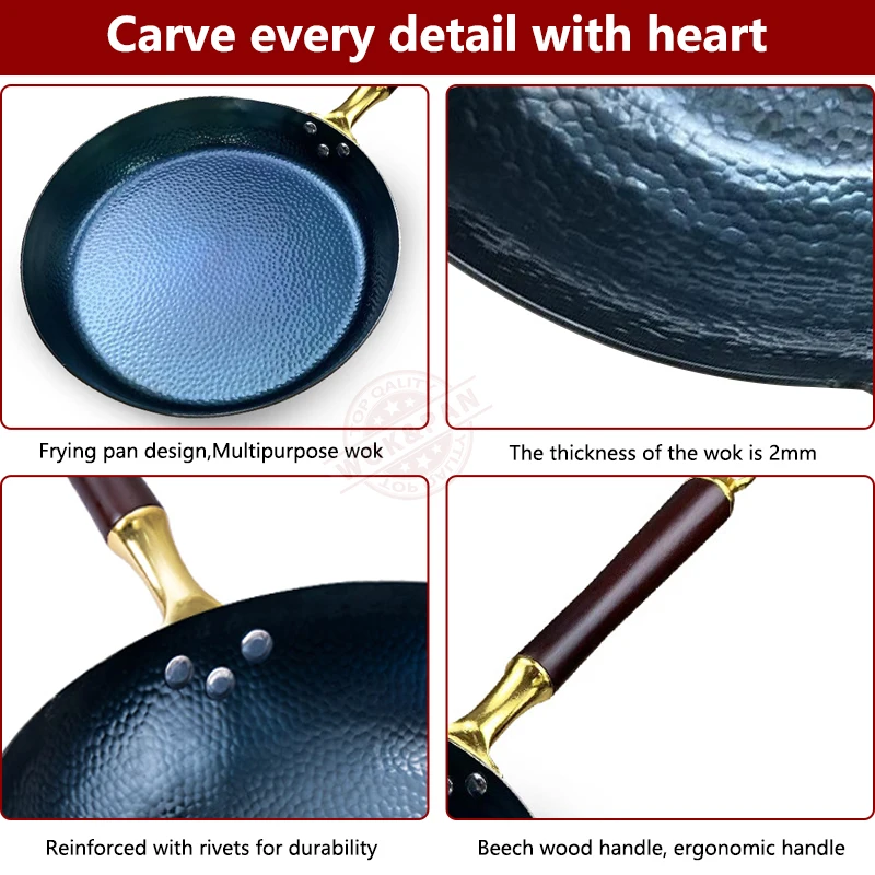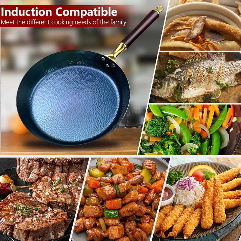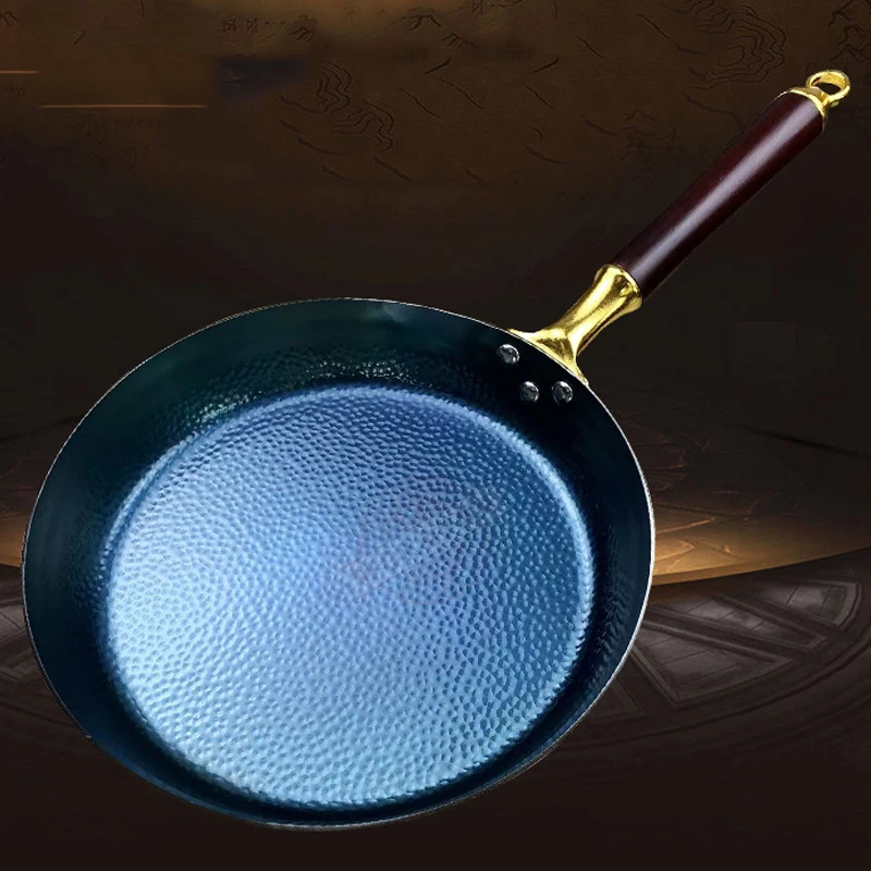 Купить Blue Frying Pan Hammered Iron Wok Nonstick 30cm Pan Skillet,PFAS-Free,Detachable Wooden Handle,Dishwasher Safe,Oven Safe,Blue за 2050рублей