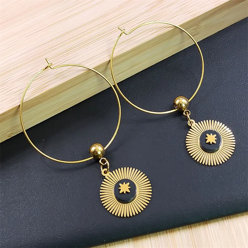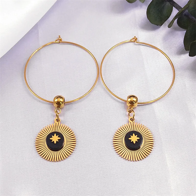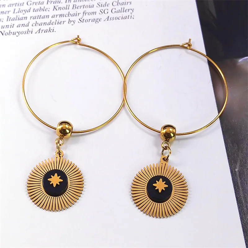 Купить Boho Stone Star Round Circle Hoop Earrings Female Gold Color Big Dangle Earrings Korean Jewelry Statement Earrings Jewelry Gifts за 200рублей