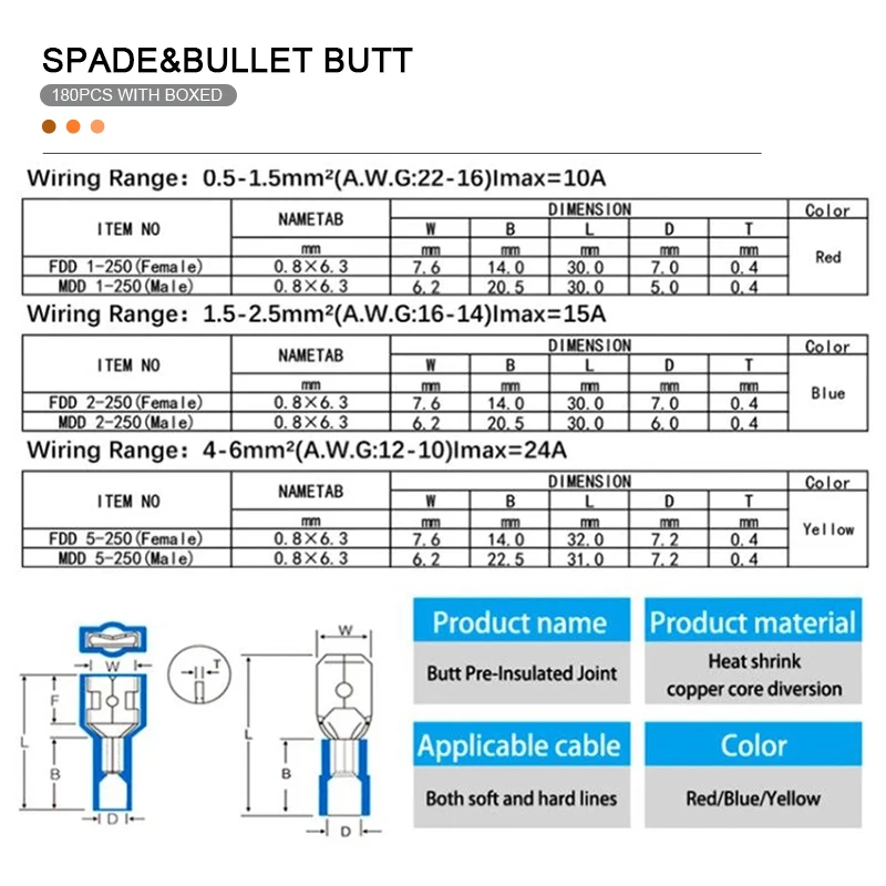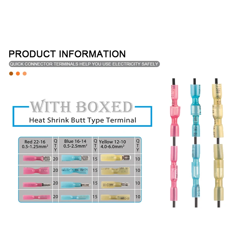 Купить Boxed Heat shrink Insulated seal Bullet/Spade Female/Male Electric Butt Crimp Terminal Waterproof Wire Connectors Splice Kit за 650рублей