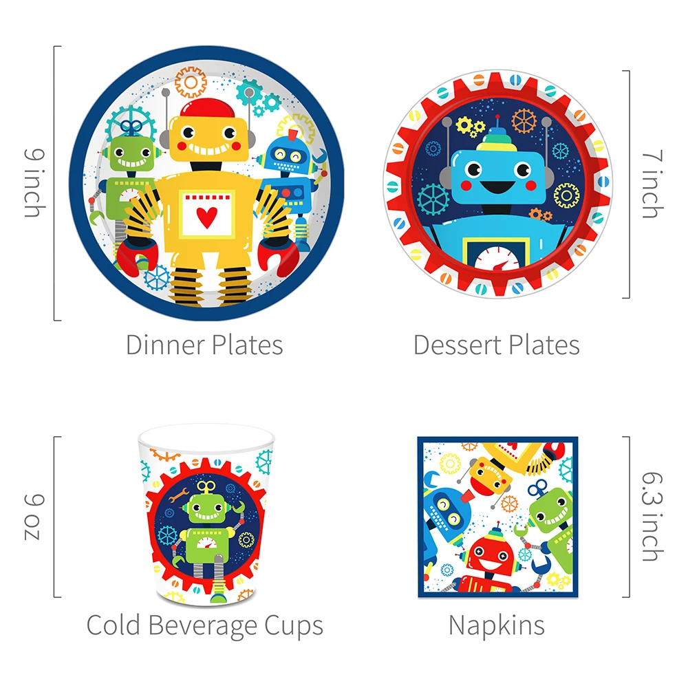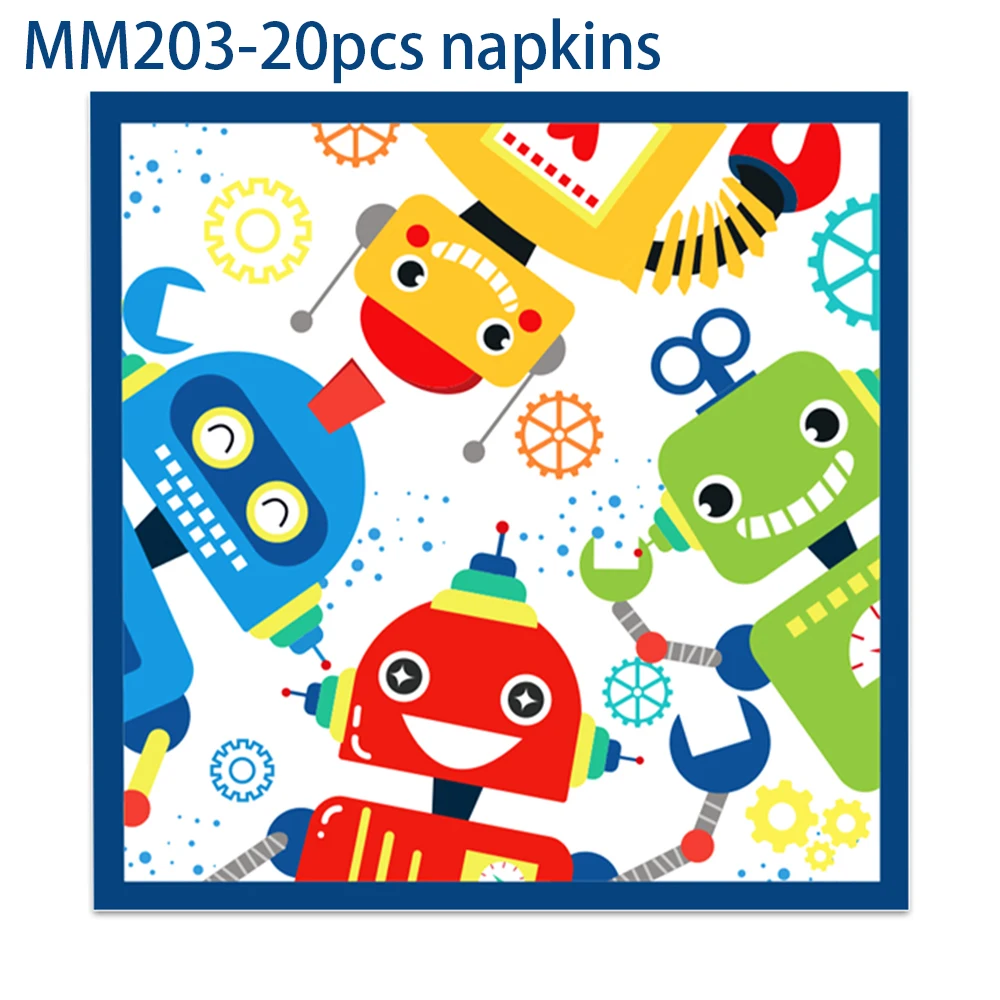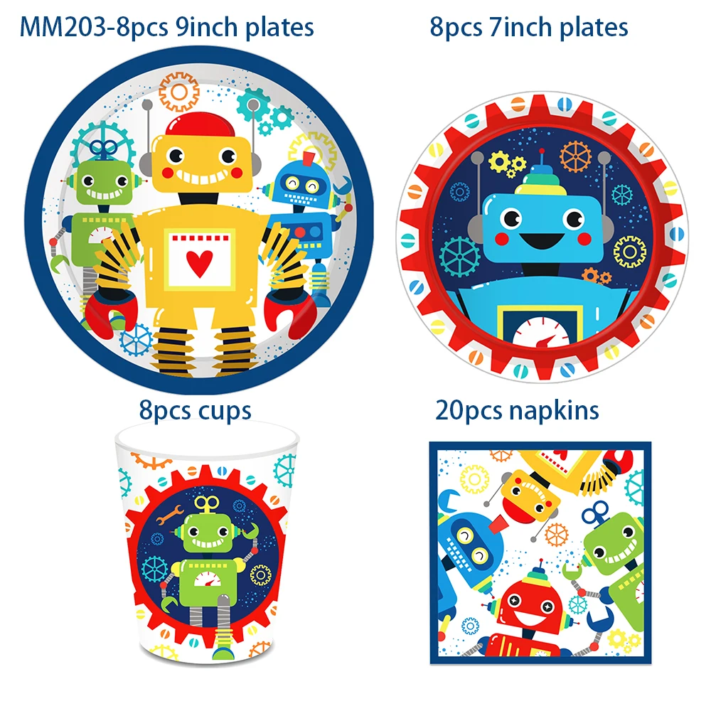 Купить Boy Kids Cartoon Mechanic Robot Birthday Party Disposable Tableware Sets Plates Napkins Cups Baby Shower Party Table Decorations за 650рублей