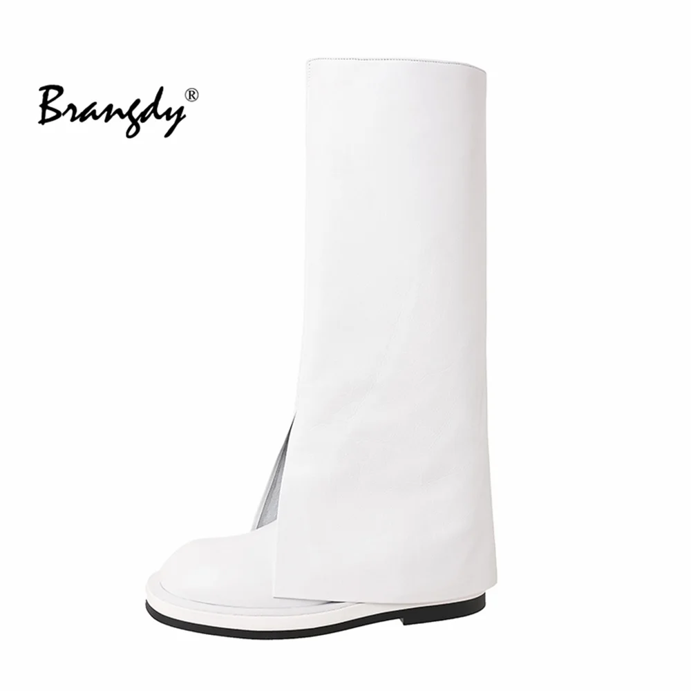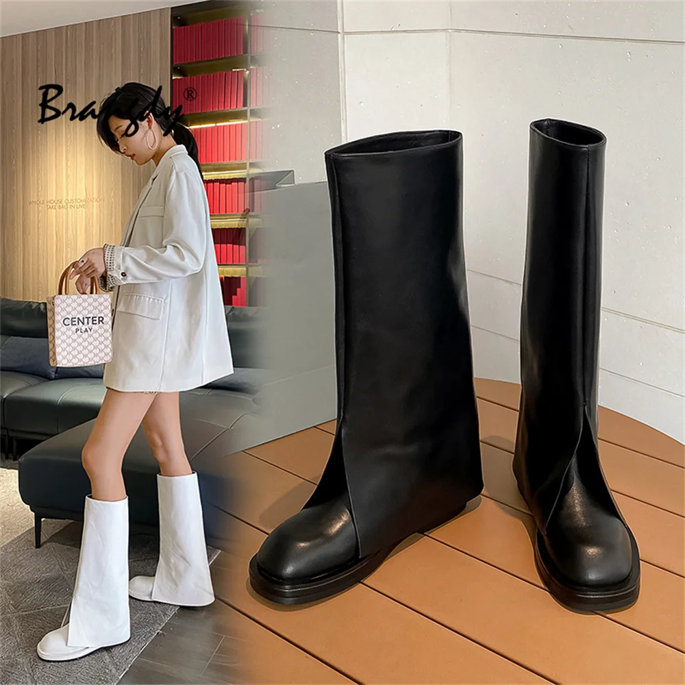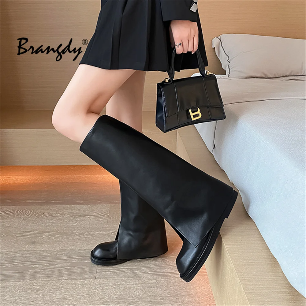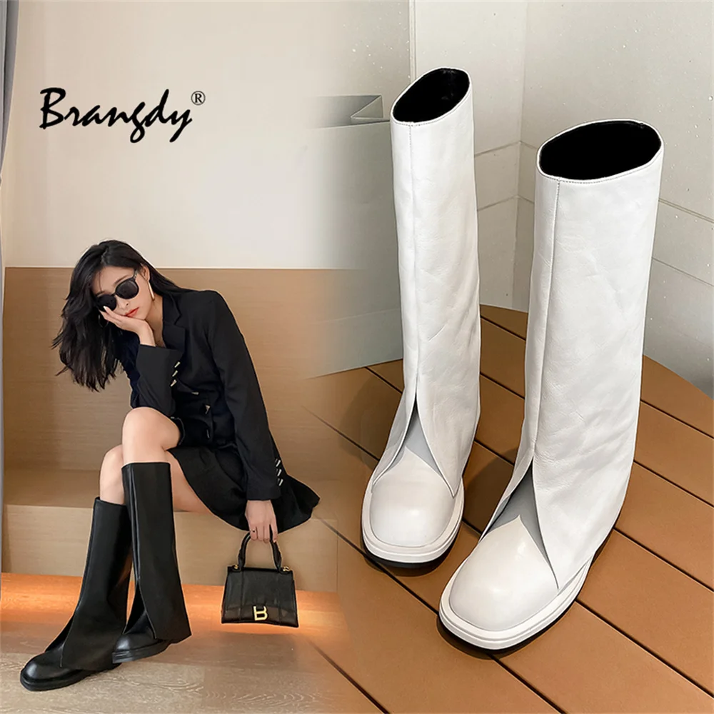 Купить Brangdy 2022 Ins Women Long Boots Flat Low Heel Shoes Cow Leather Knee High Boots Fashion Shoes Female Footwear Size 34-39 за 5100рублей