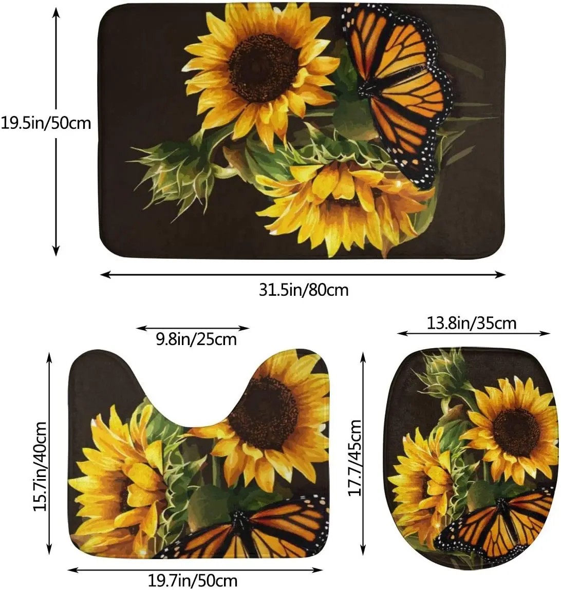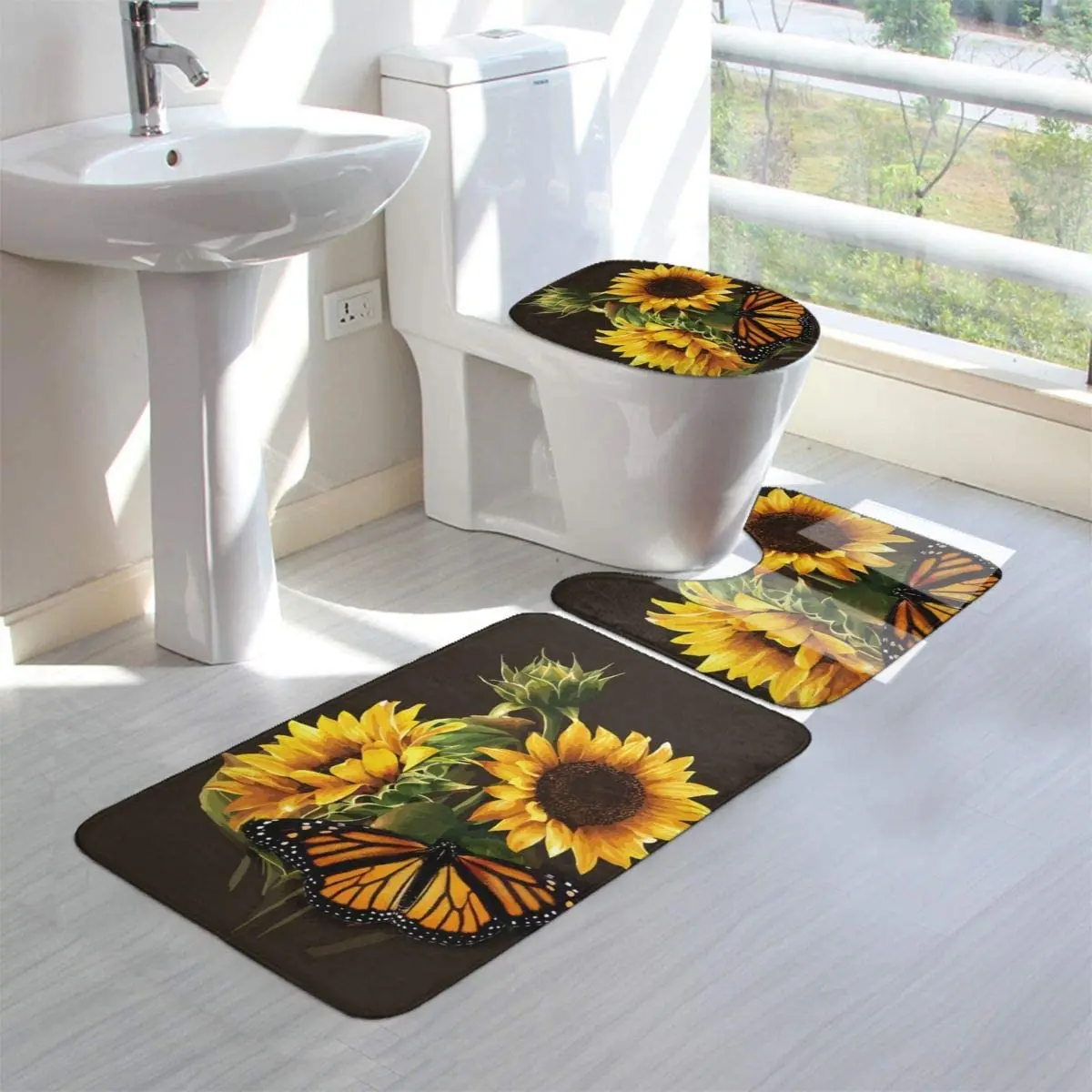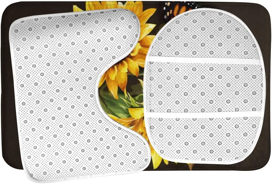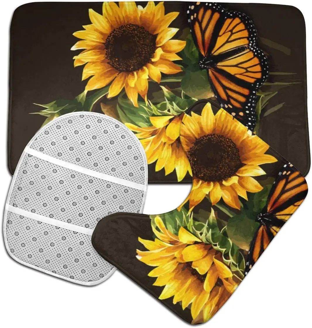 Купить Butterfly Floral Sunflower Bathroom Rug Mats Set 3 Piece Soft Non-Slip with Backing Pad Bath Mat Contour Rug Toilet Lid Cover за 350рублей