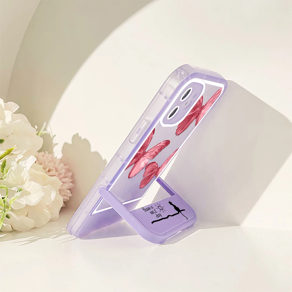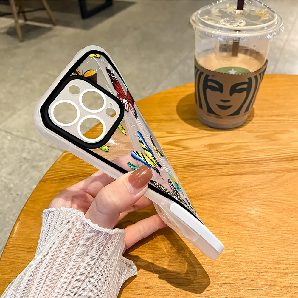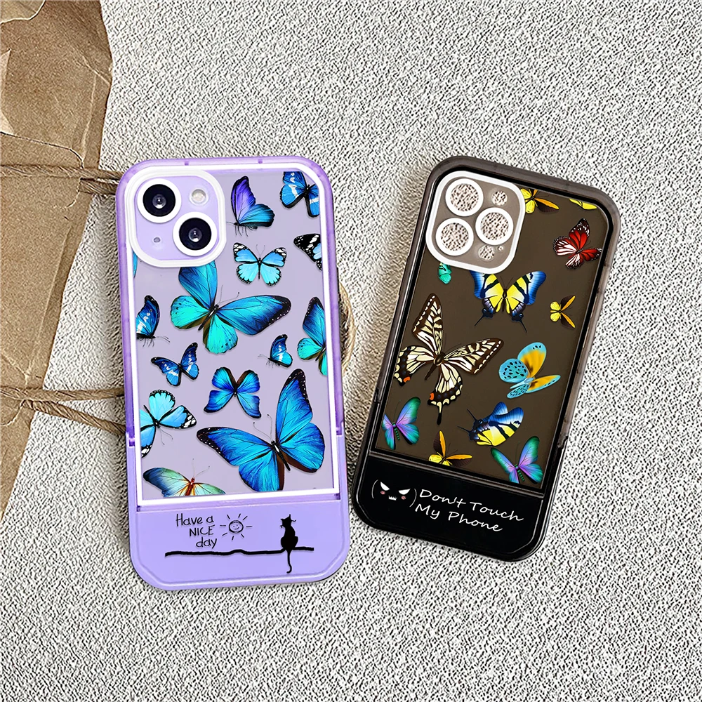 Купить Butterfly Stand Holder Case for iPhone 14ProMax 14Plus 13 12 11 Pro Max Transparent Coque Soft Silicone Back Shell Cover за 150рублей