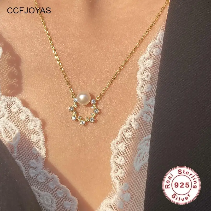 Купить CCFJOYAS 925 Sterling Silver Gold-plated Pearl Necklace Women Light Luxury niche Simple INS Cold WindCclavicle Chain Necklace за 450рублей