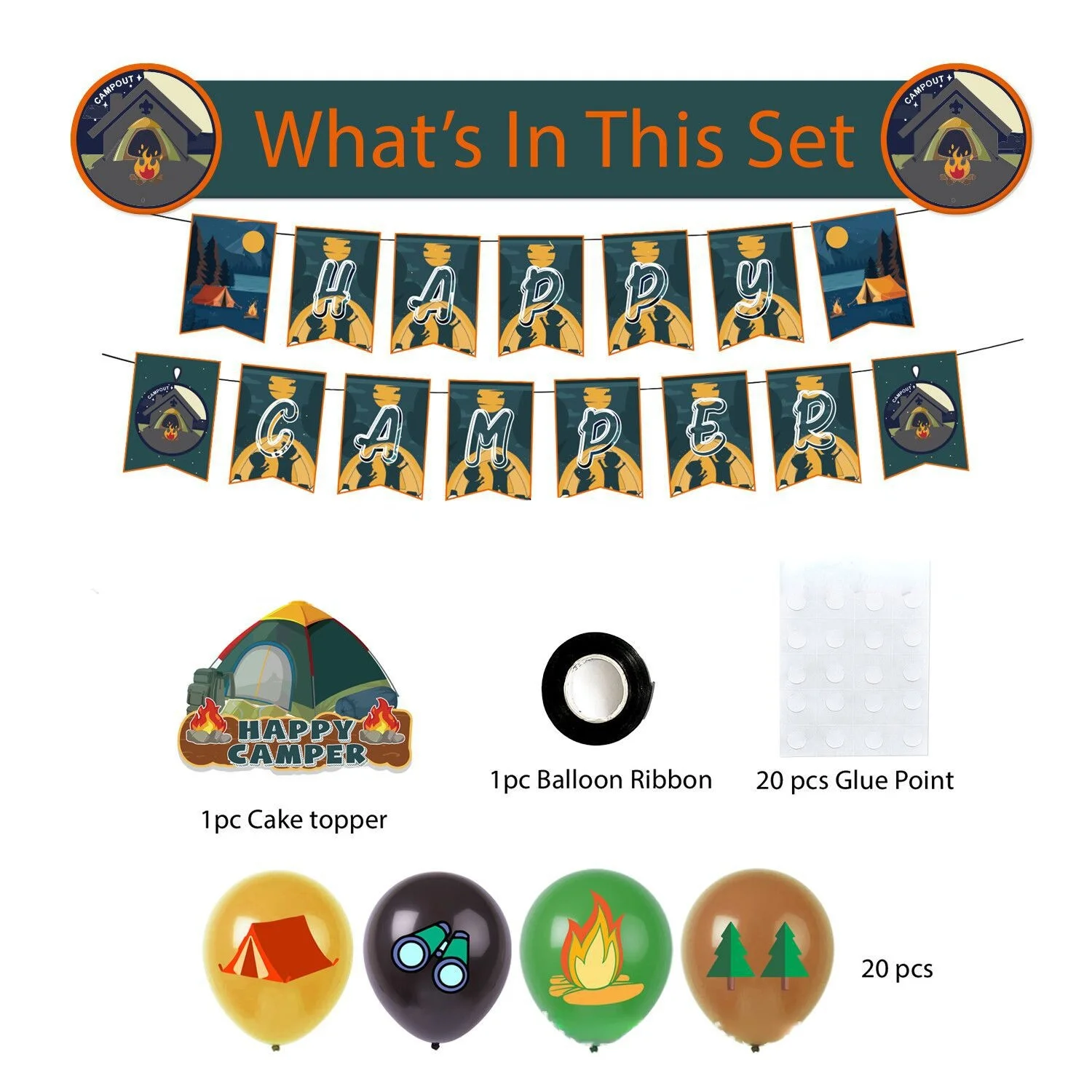 Купить CHEEREVEAL Camping Theme Party Decoration12 Inch Green Balloons Set Happycamper Banner Cake Topper for Theme Party Supplies за 600рублей