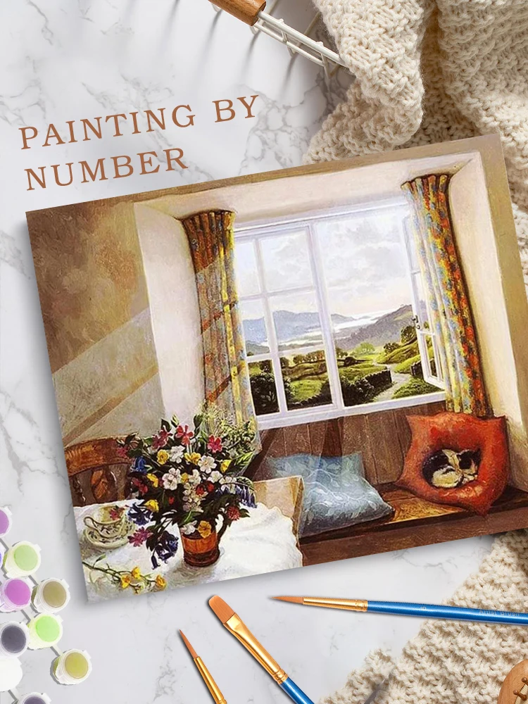 Купить CHENISTORY Coloring By Number Window Landscape Kits Home Decor Pictures Painting By Number Flower Handpainted Art Gift за 300рублей