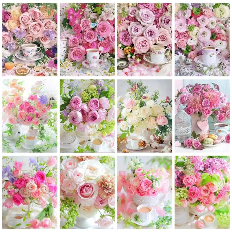 Купить CHENISTORY Modern Painting By Numbers Adults Crafts Fresh Pink Rose Handpainted With Frame Coloring By Number Gift Complicated за 300рублей
