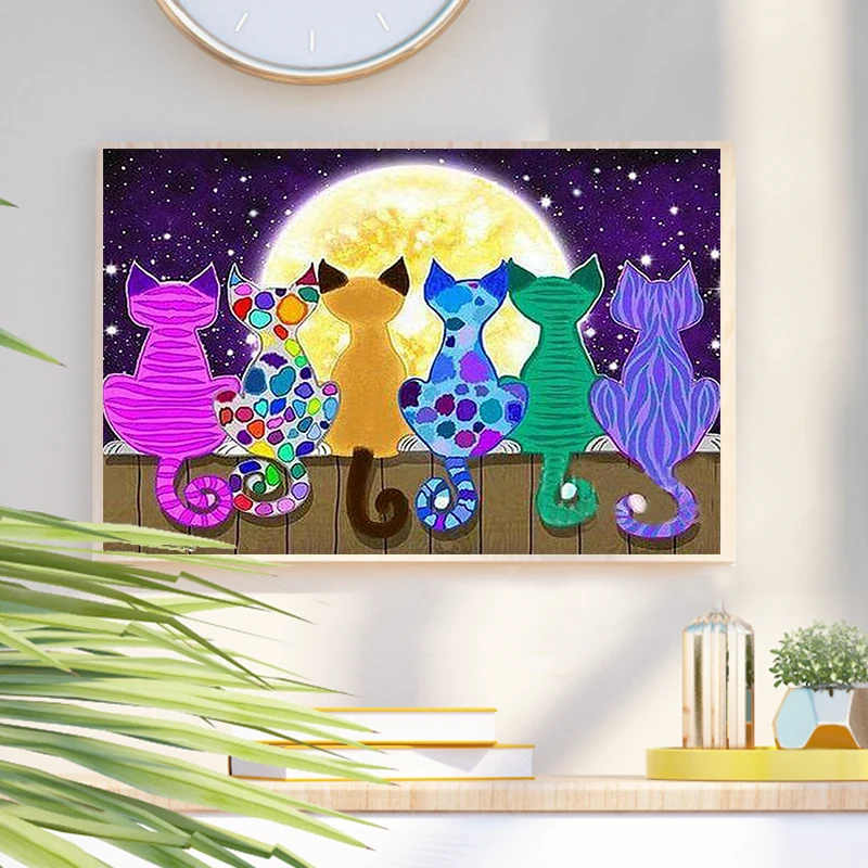 Купить CHENISTORY Oil Painting By Numbers Colorful Cartoon Cat With Frame Pictures By Numbers Animal Number Painting Artwork за 300рублей