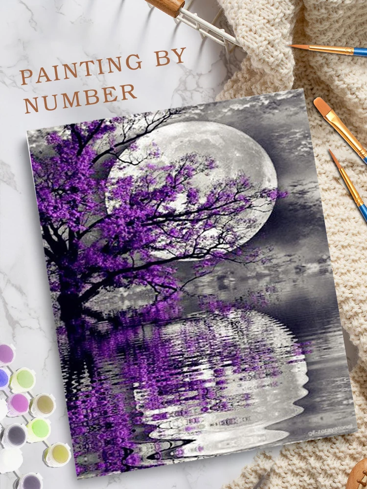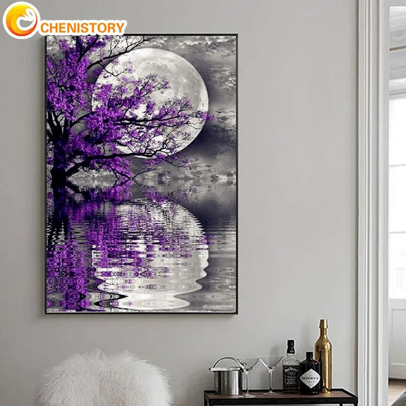 Купить CHENISTORY Paint By Number Moon Landscape Drawing On Canvas HandPainted Art Gift DIY Pictures By Number Kits Home Decor за 350рублей