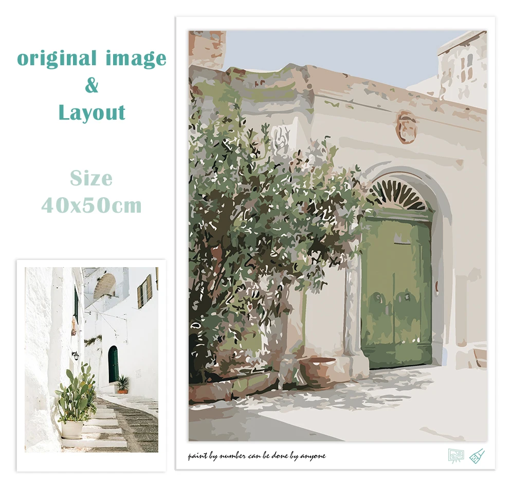 Купить CHENISTORY Paint By Number Tranquil Europe Garden Alley Plant Leaves Drawing On Canvas HandPainted Picture By Number Decor за 300рублей