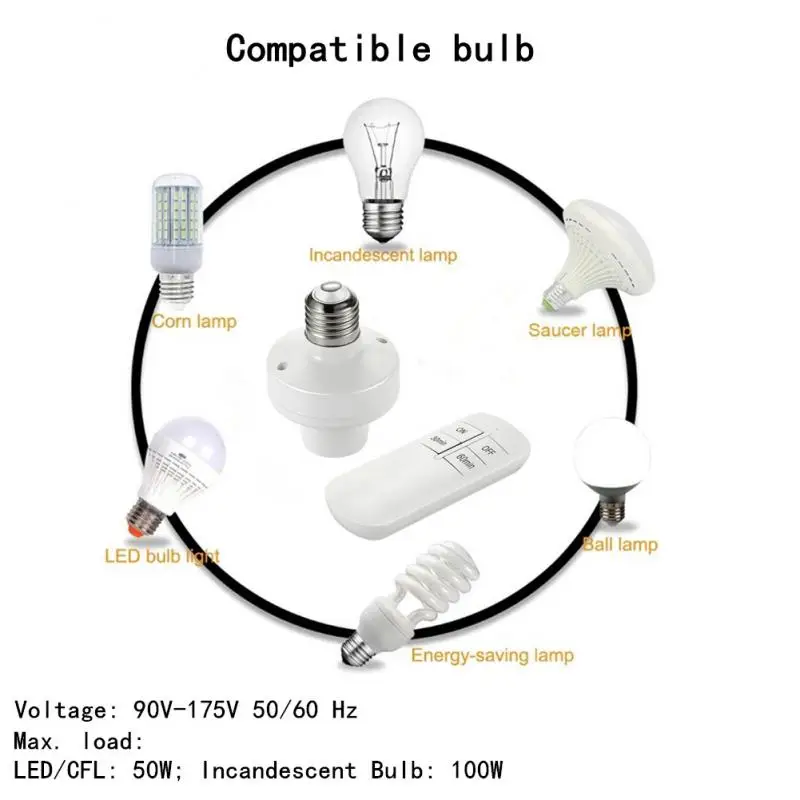Купить CORUI E26 / E27 Wireless Remote Control Light Lamp Base ON/Off Switch Socket Holder 15M Range RC Smart Device 110V 220V Socket за 300рублей