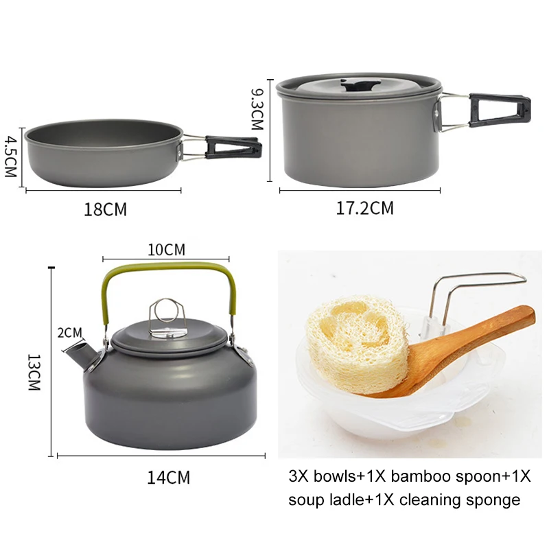 Купить Camping Cookware Kit Outdoor Portable Non-stick Aluminum Cooking Set Kettle Pan Pot Travel Hiking Picnic BBQ Tableware Equipment за 1600рублей
