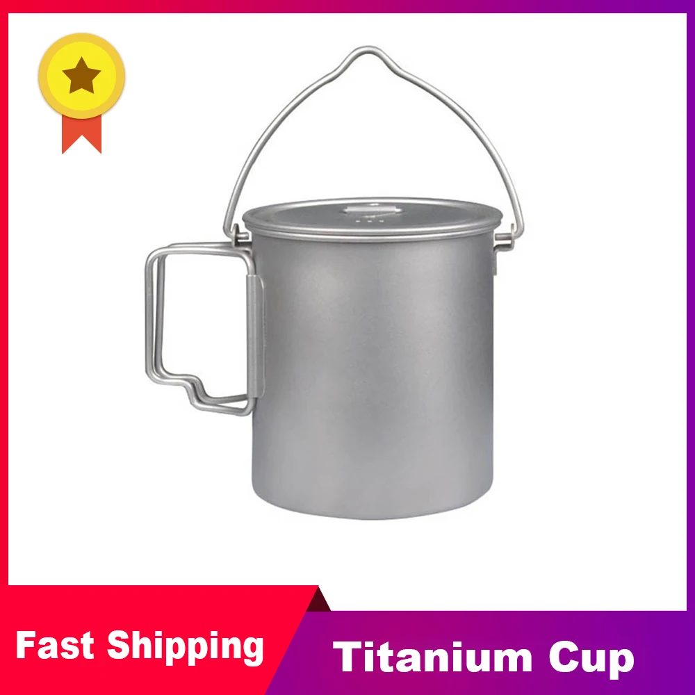 Купить Camping Titanium Cup Ultralight Portable Hanging Pot with Lid and Foldable Handle Outdoor Camping Hiking Cookware Tableware за 1400рублей
