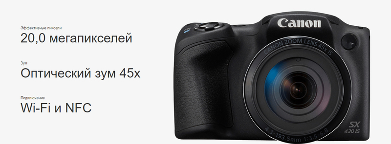 Canon PowerShot SX430 IS — бюджетная фотокамера, которая стоит своих денег . 45-кратный оптический зум со сверхшироким углом и минимальной дистанцией фокусировки 0 сантиметров позволяют запечатлеть абсолютно любой сюжет .