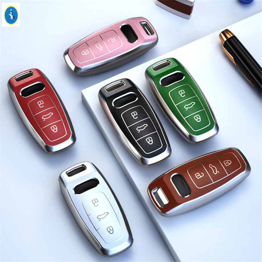 Купить Car Accessories Key Decor Case Cover Shell Electroplate TPU Fit For Audi A3 A4 A5 A6 Q2 Q3 Q5 2018 - 2022 More Protection Kit за 650рублей