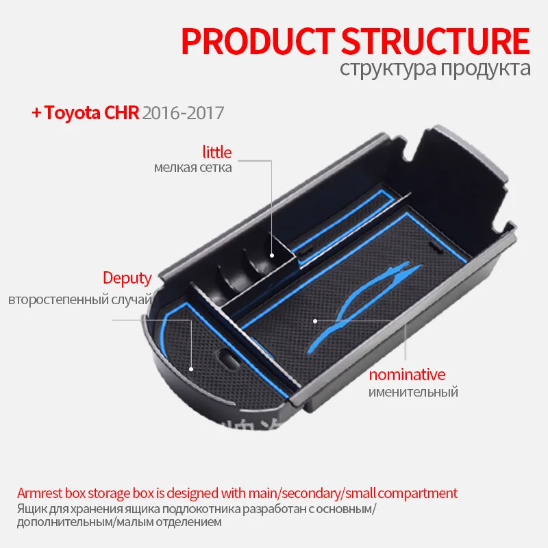 Купить Car Central Armrest Storage Box For Toyota CHR 2016-2017 Center Console Tray Organizer Interior Decorative Accessories за 650рублей
