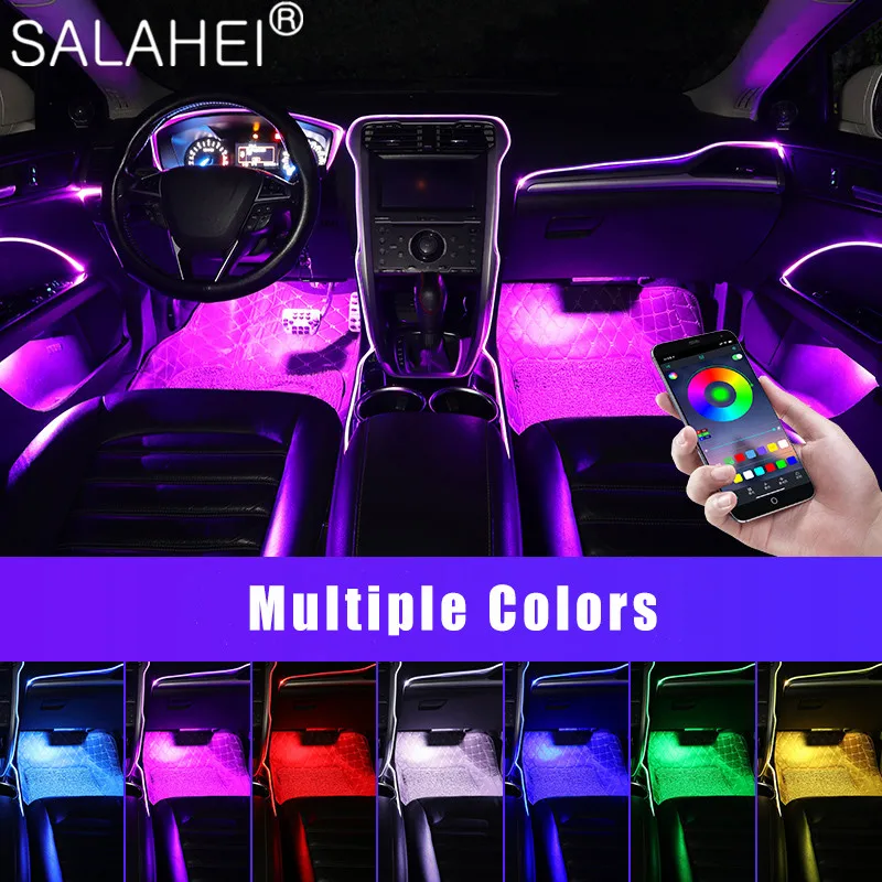 Купить Car Interior Flexible Atmosphere Lamps APP Sound Control RGB Mode Colorful Auto Ambient Lamps Decorative Lights Strips 6m/10m за 1350рублей