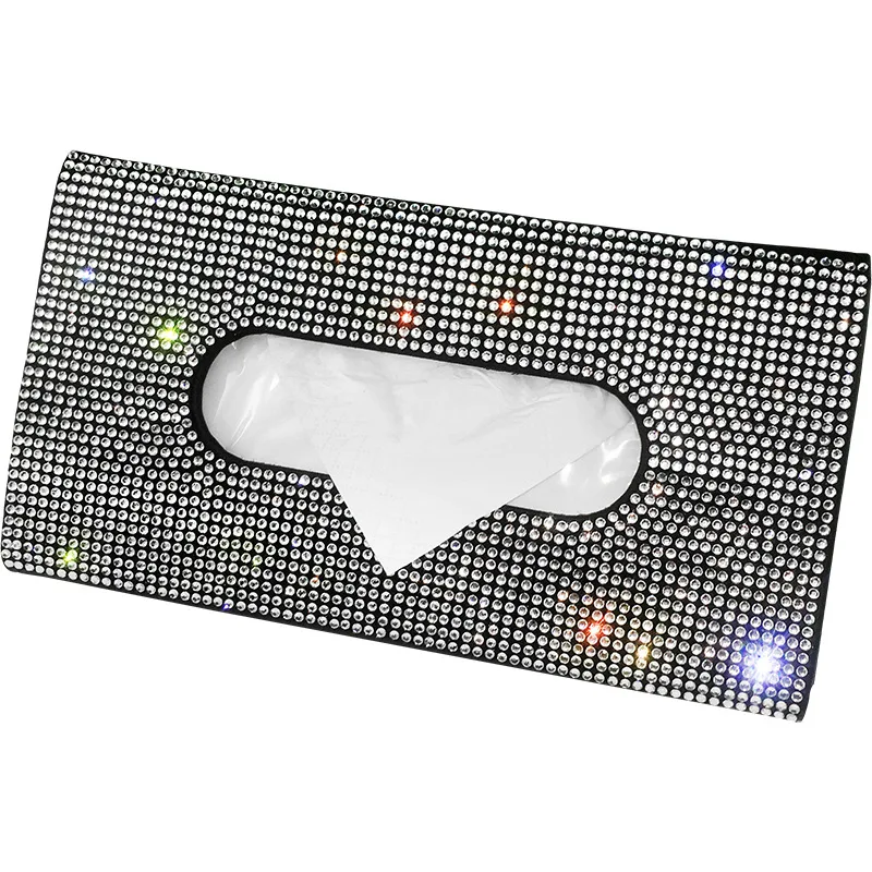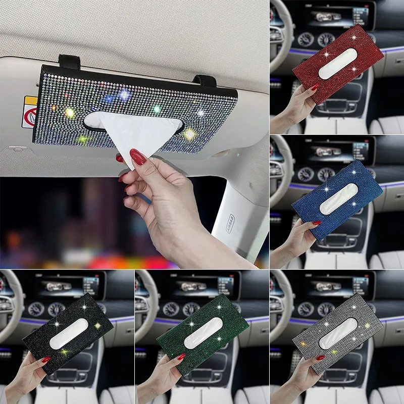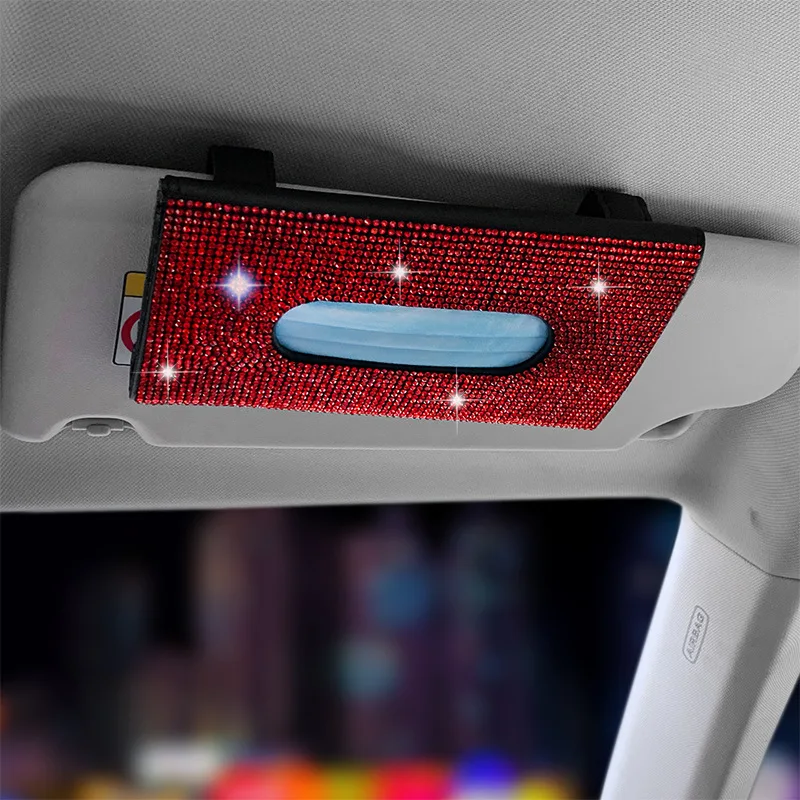 Купить Car Sun Visor Tissue Box Holder Bling Crystals Cover Case Clip PU Leather Backseat Tissue Case Auto Accessories for Women за 550рублей