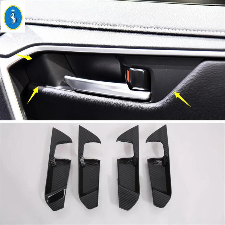 Купить Carbon Fiber Look Interior Refit Inner Door Pull Handle Hand-clasping Bowl Cover Trim Fit For TOYOTA RAV4 RAV 4 XA50 2019 - 2023 за 1250рублей