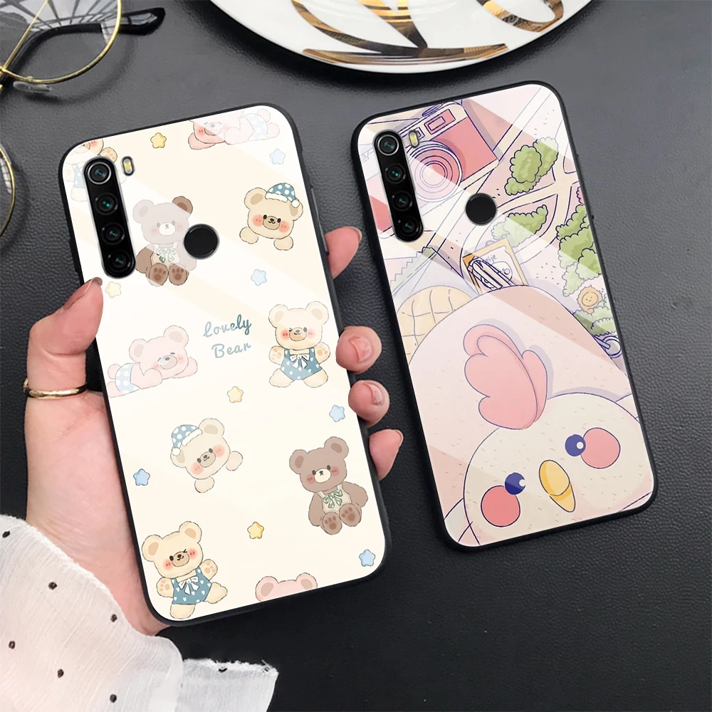 Купить Cartoon Animal Phone Case for Redmi Note 11 11S 5G 6 7 8 9 10 Pro Max 9S 6A 7A 8A 8T 9A 9C 9T Tempered Glass Cute Bear Cover за 200рублей