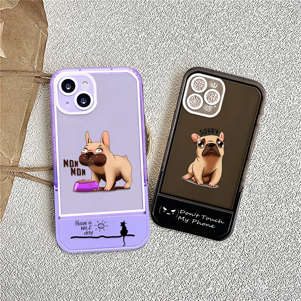 Купить Cartoon Cute Dog Stand Holder Case for iPhone 14ProMax 14Plus 13 12 11 Pro Max Luxury Soft Transparent Silicone Protection Shell за 150рублей