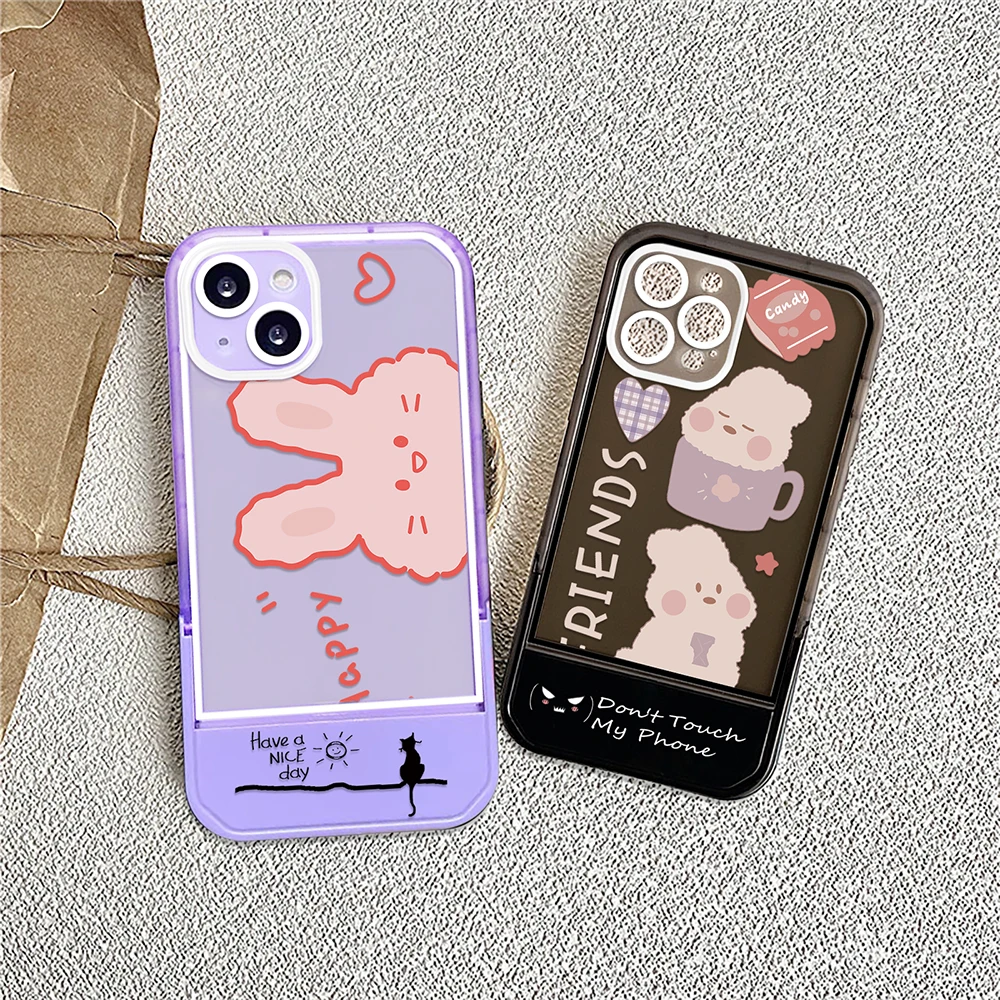 Купить Cartoon Cute Rabbit Stand Holder Case for iPhone 14ProMax 14Plus 13 12 11 Pro Max Luxury Soft Transparent Silicone Cover Capinha за 150рублей