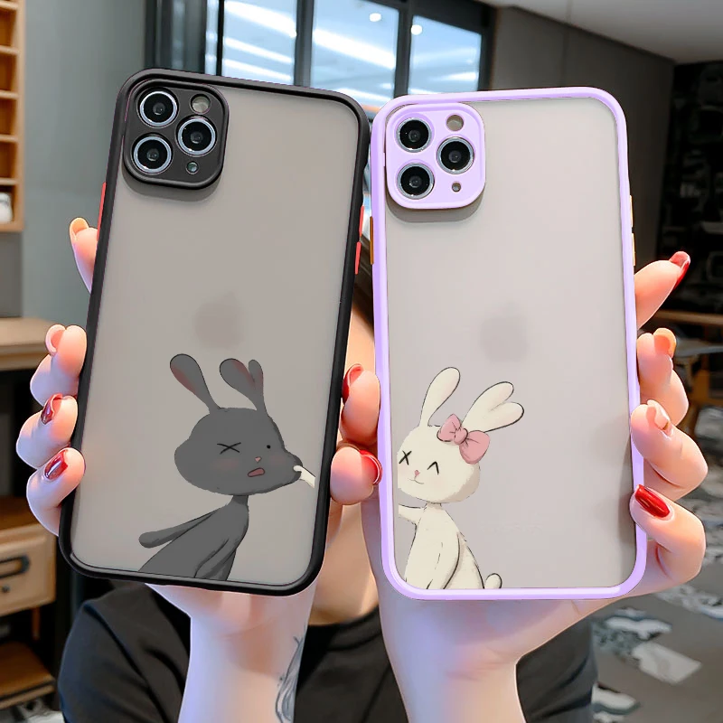 Купить Cartoon Rabbit Lover Couple Phone Case for iPhone 7 8 Plus SE2 13 12 11 Pro MAX Mini XS X XR Hard Shockproof Back Covers Coque за 150рублей