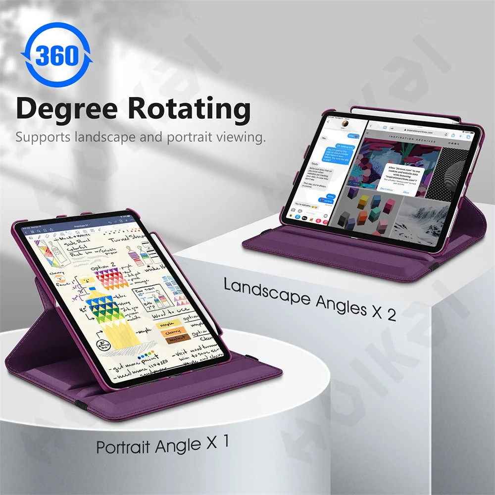 Купить Case For iPad 10.2 Pro 11 12.9 2022 2021 2020 /Mini 6 5 4 Rotating e Kickstand Litchi Texture PU Leather Flip Stand Holder Cover за 400рублей