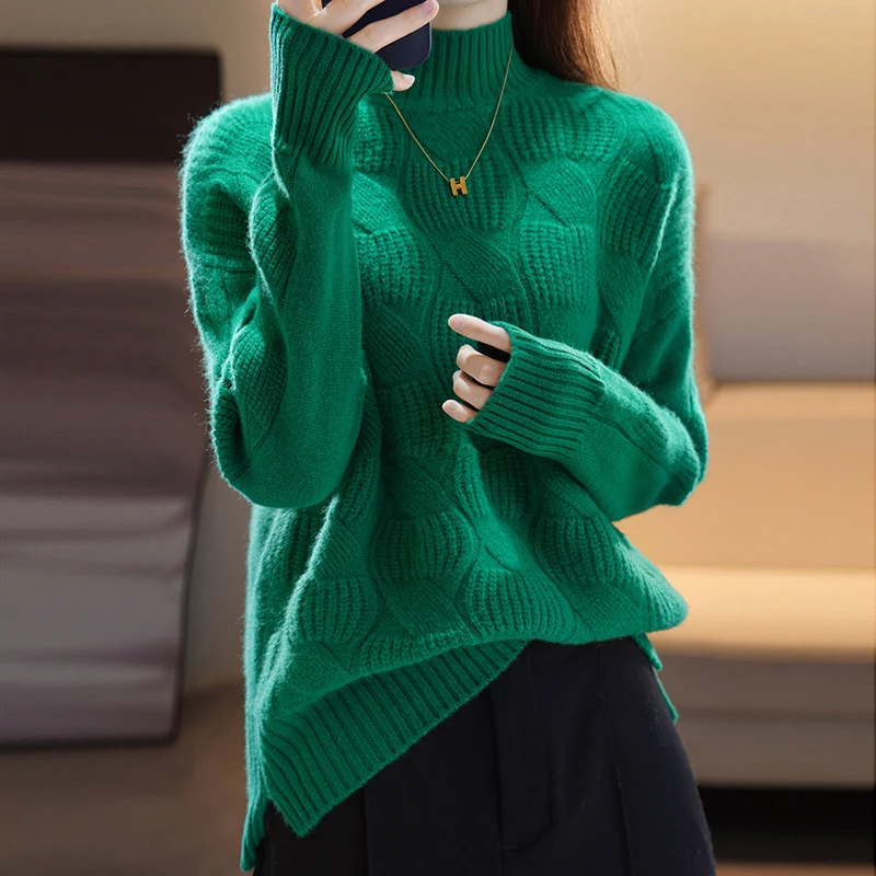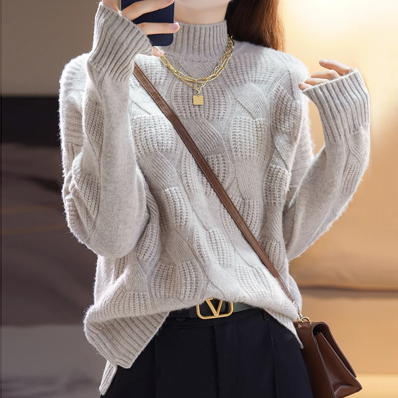 Купить Cashmere Sweater Ladies Half Turtleneck Pullover Solid Color Autumn And Winter New 100% Pure Wool Fashion Loose Sweater Top за 2500рублей