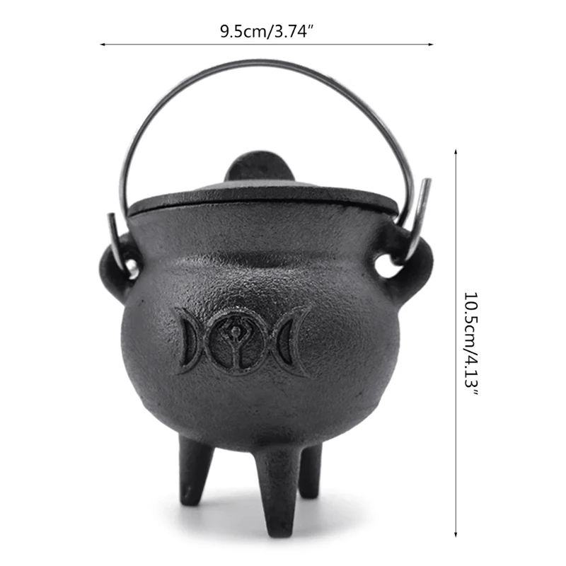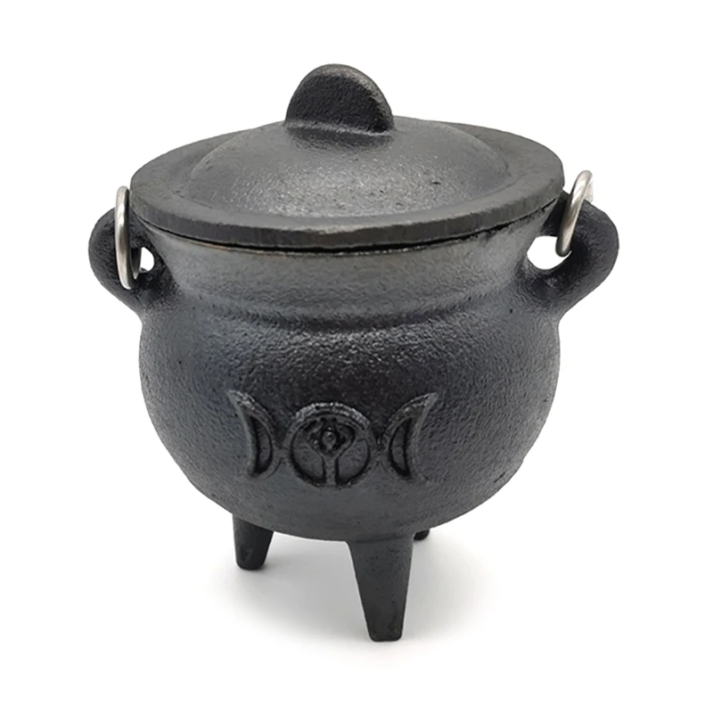 Купить Cast Iron Cauldron with Lid Handle Moon Phase Witch Pot Incense Burning Pot for Spells Smudging Ritual Blessings за 1350рублей