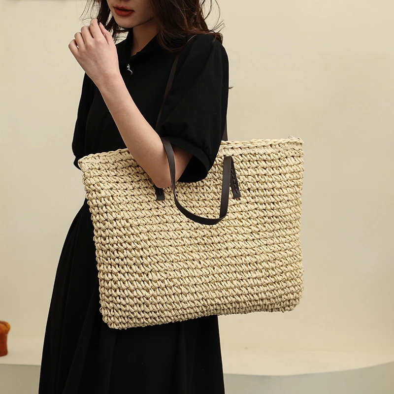 Купить Casual Summer Beach Bag For Women 2023 Large Capacity Straw Bags Designer Bag Handmade Big Purses Handbags Rattan Shoulder Bags за 850рублей