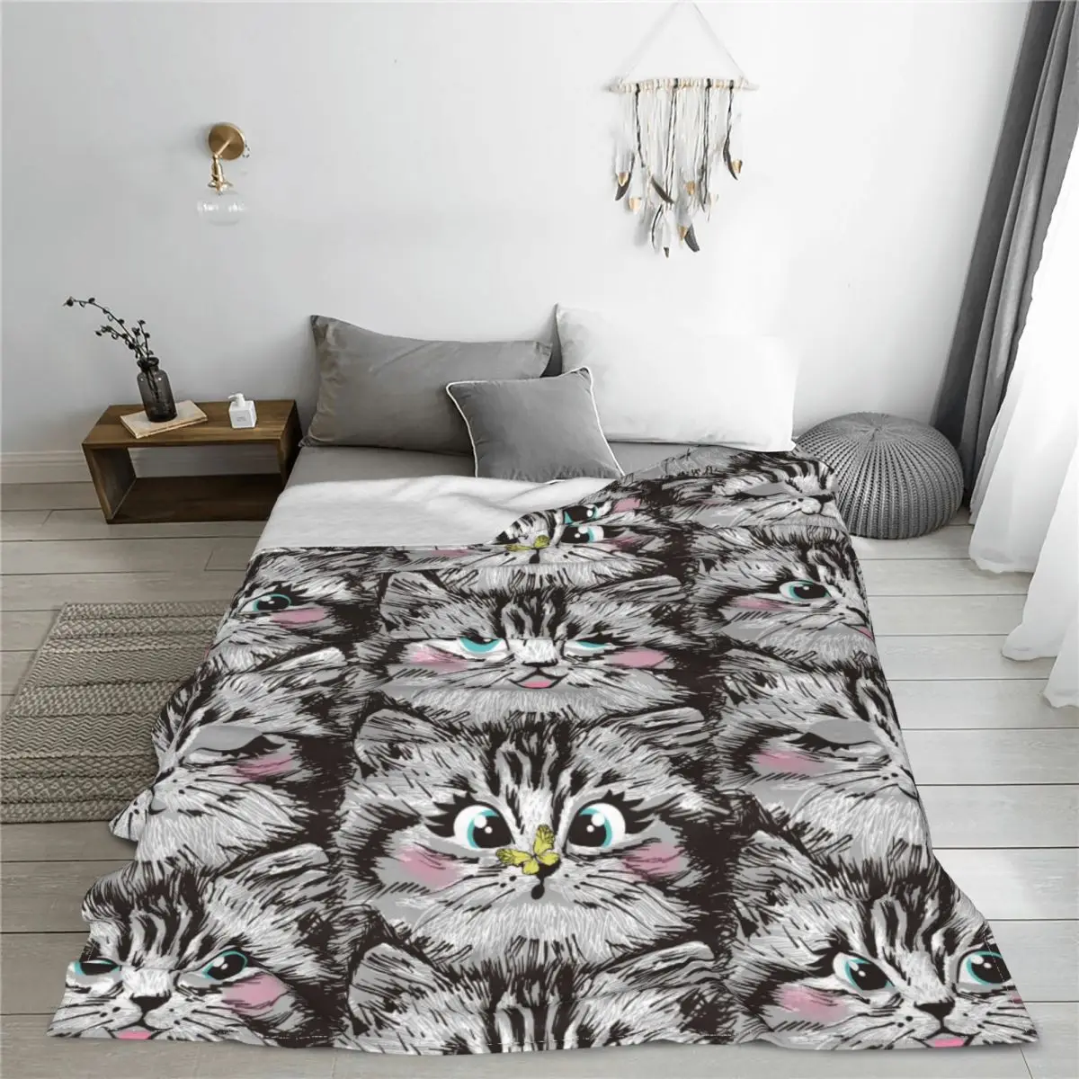Купить Cat Blankets Fleece Autumn/Winter Cute Furry Kitten Face Multi-function Warm Throw Blanket for Bed Couch Bedding Throws за 850рублей